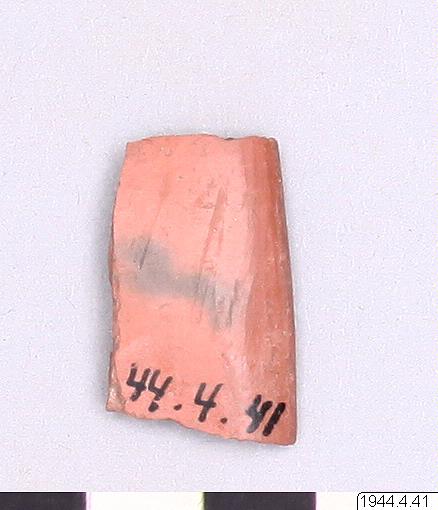 Fragment av skål med målad dekor. Ytfynd, boplatsområdet närm. Liquiliqui.