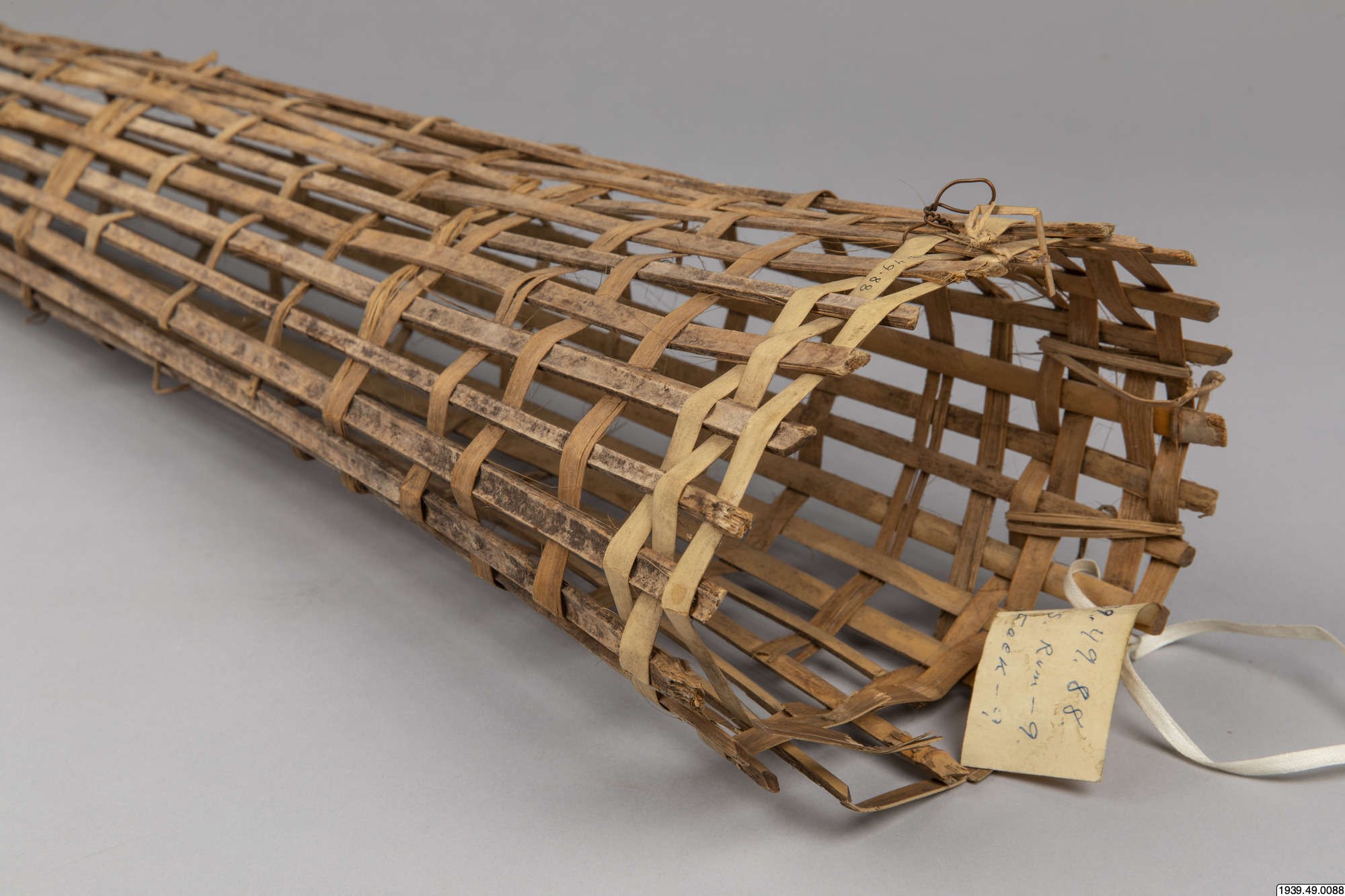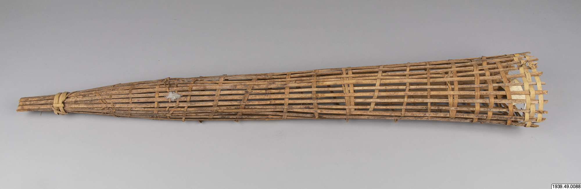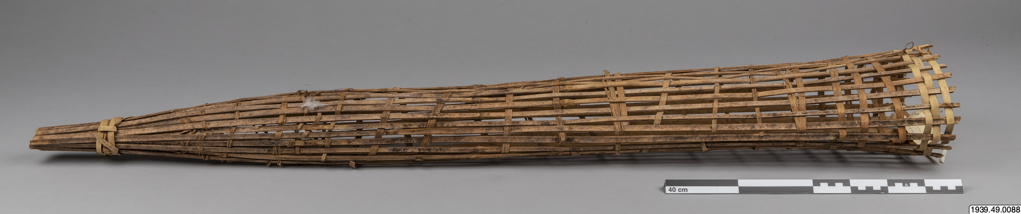 Alfälla, lång, smal tratt av bambuspjälor. Köpt. Loeorkai