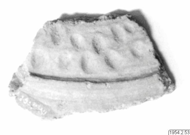 • Fragment av bukigtlerkärl med intryckta punkter och relieflinje.