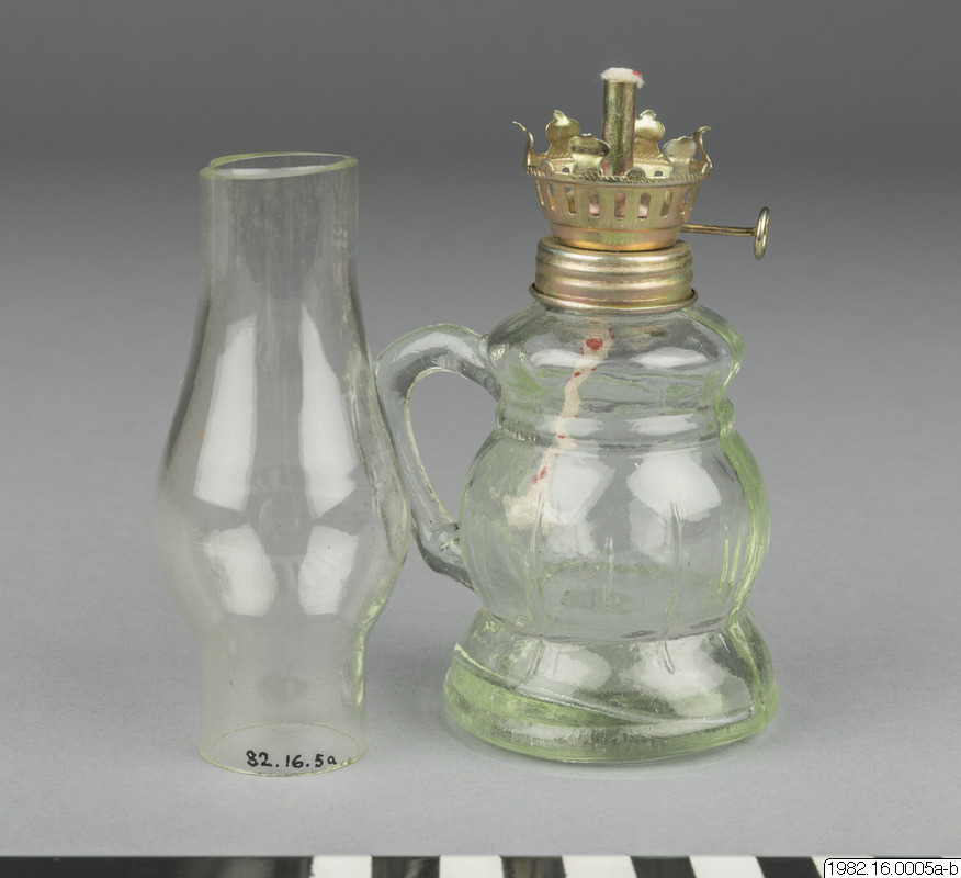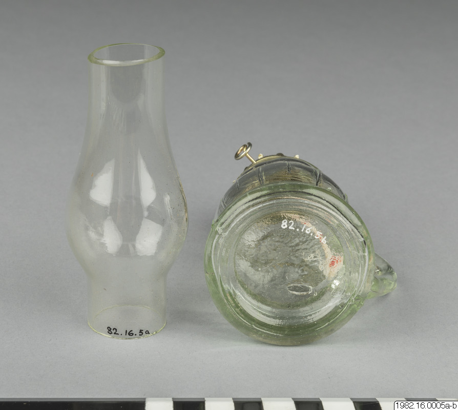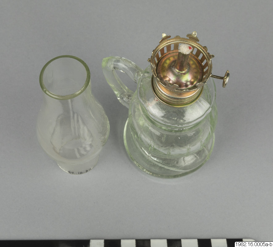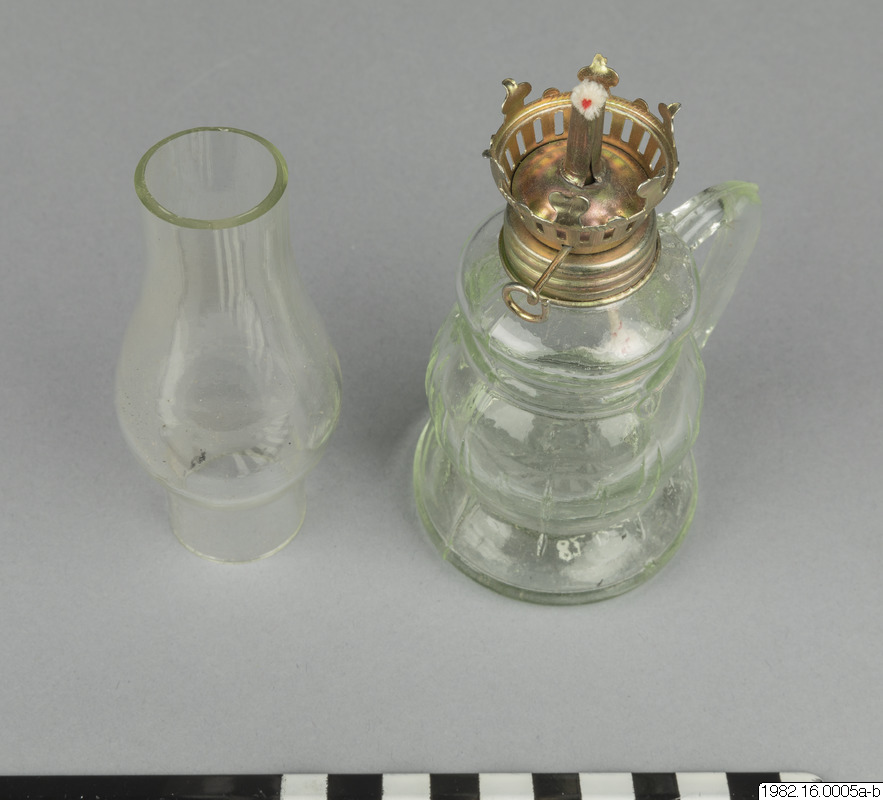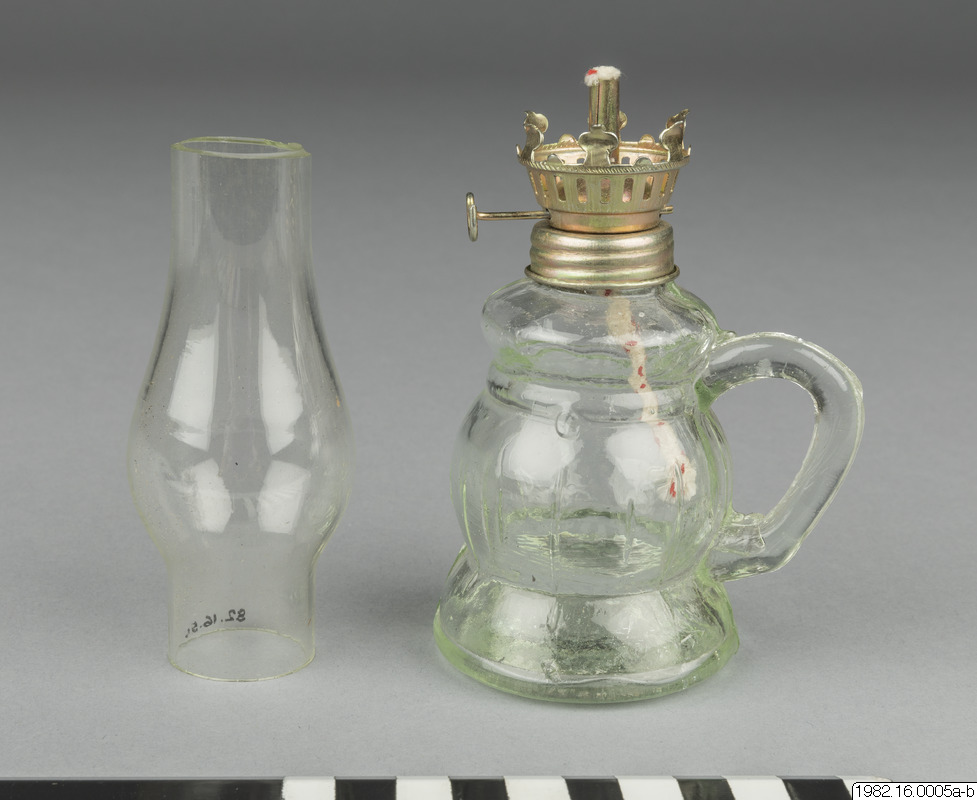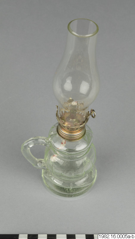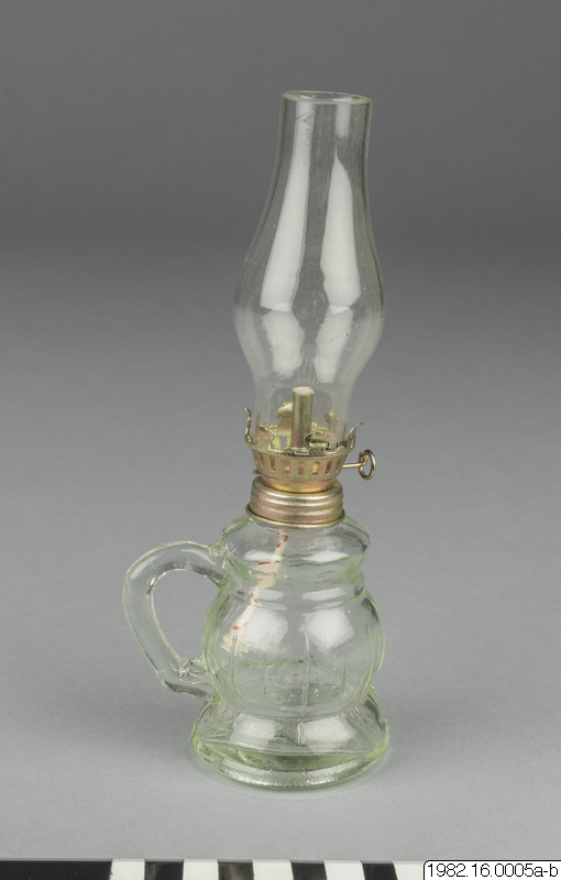 • Fotogenlampa av glas. H. 20 cm D. 6 cm