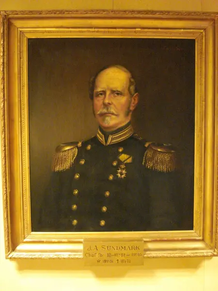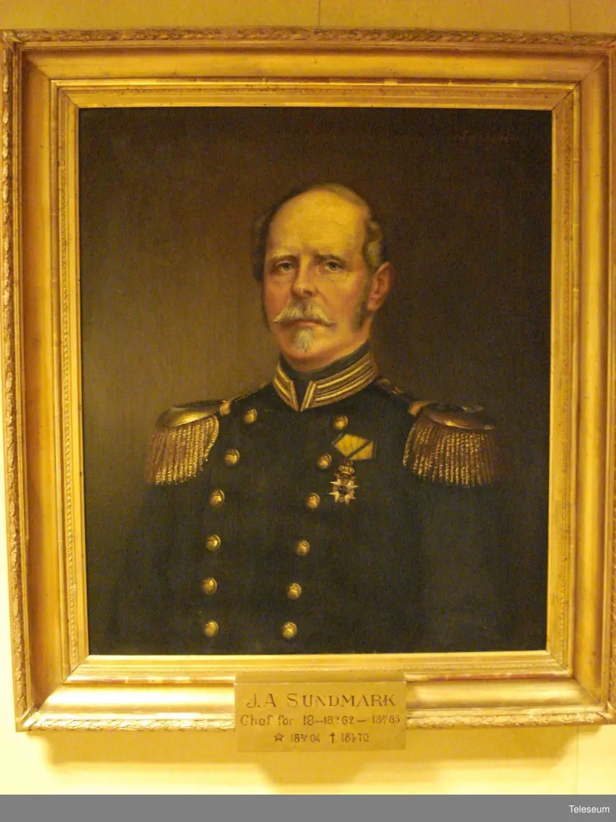 • Olja på duk, förgylld ram. Porträtt föreställande J.A. Sundmark. Chef I8 1862-1865.