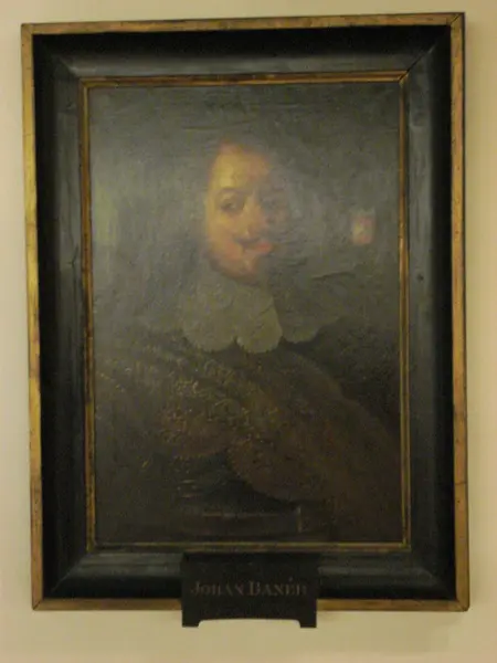 • Olja på duk, svart och förgylld ram. Porträtt föreställande Johan Banér.