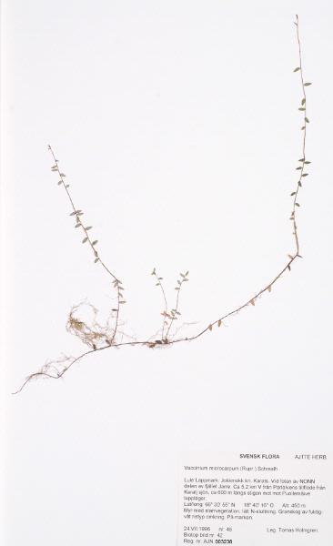 Insamlad. Fyndplats: Jarre. Vid foten av Nonn delen av fjället Jarre. Ca 5,2 km V från Pärlälvens tillflöde från Karatj sjön, ca 600 m längs stigen mot Puollemåive lappläger. Lat/long: 66 30' 55" N. 18 40' 16" O. Alt: 450 m. Myr med starrvegetation, lätt N-sluttning. Granskog av fuktig-våt ristyp omkring. På marken.
