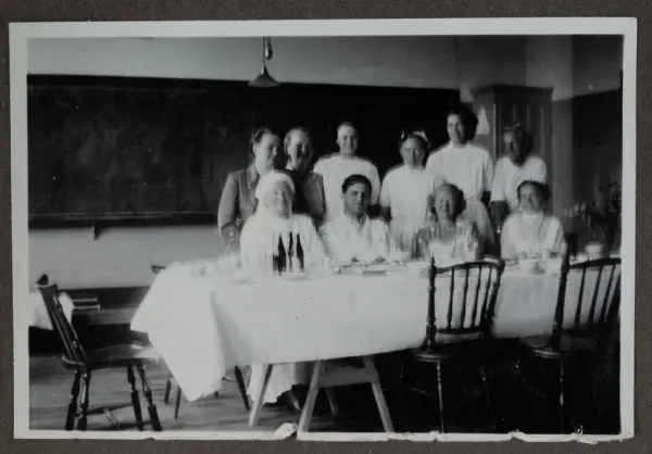 • Fotografier från familjealbum som avbildar personal och de patienter som vårdades på beredskapssjukhuset Margretegärdeskolan i Uddevalla 1945. Våren och sommaren 1945 gjordes skolan om till beredskaps... Visa hela