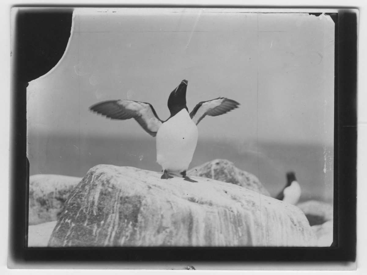 - 'Tordmule, stående på en sten och flaxar med vingarna. :: :: Ingår i serie med fotonr. 1232-1246.'