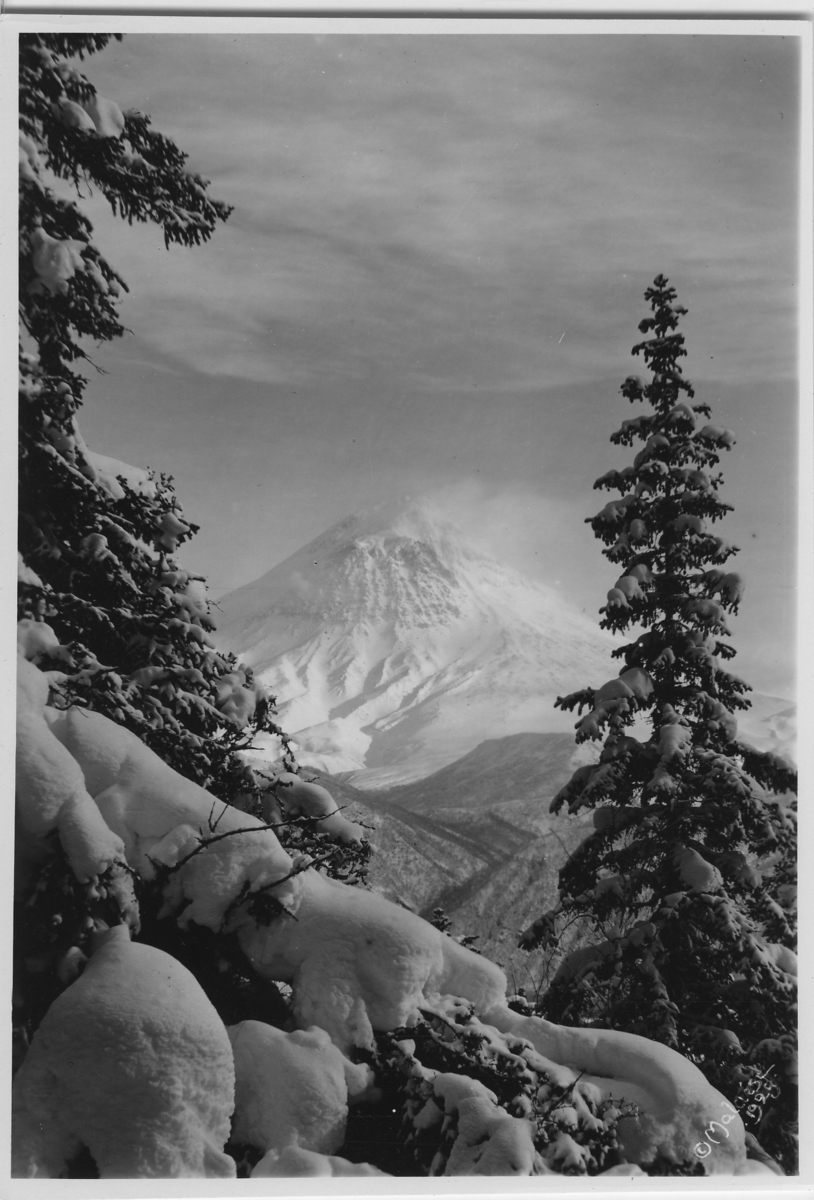 'Vulkanen Kisimen , i förgrunden snötyngd grangren. :: (6) :: :: Serie fotonr 4916-4930. :: Kartskiss fotonr. 4916:1 visar motivens läge.'