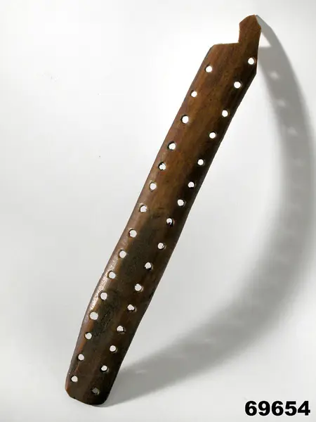Huvudliggaren: "Refsticka fr. Enontekis kapellförs. Finska lappmarken. Från Kätkesuando. Af renhorn. Brukas att refva garn på till stora väfvar. Ink. af jägmästaren Hugo Samzelius jämte 69.653. 1891. Bil. Samzelius 356."