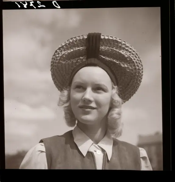 Hatt-mode. Modell är skådespelerskan Karin Nordgren.