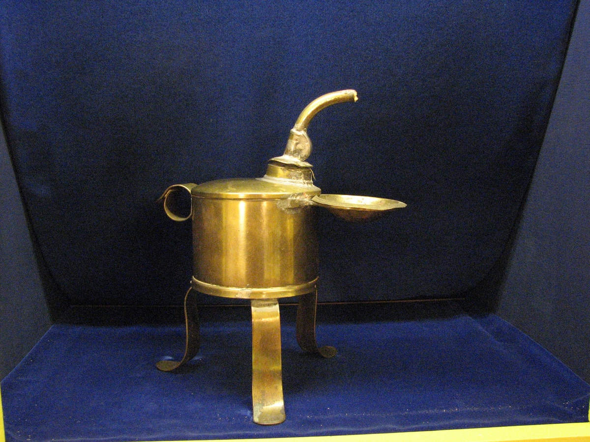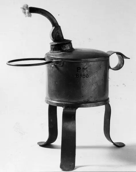 Förseglingslampa för sprit. Behållaren cylindrisk, rund bottenyta, svagt kupad översida. Står på tre fötter och har handtag. Upptill brännare, ett böjt rör, lött vid cylinderns skruvlock. Iröret den grova veken av tvinnade linnetrådar. Lös mässingsskål.