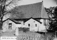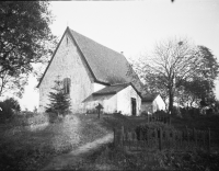 Mot sakristian är muröppningen välvd och dörren är en panelad plankdörr med äldre lås och beslag