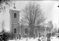 Sakristia i trä med likartad utforming som långhus. Mindre altare mot söder med dekorfönster, möjligen tillkommet i samband med nya fönster och dörr 1963.