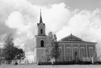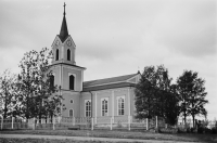 Den stora, gulmålade träkyrkan som ritades av J F Åbom, stod klar 1857 och ersatte då ett kapell från 1600-talet på samma plats.