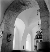 Sambandet mellan läktaren/läktarna och kyrkorummet förbättrades 1607 då den nedre delen av denna vägg revs och man istället murade ett enda rundbågigt valv från sida till sida. Samtidigt förändrades även muren mellan den mellersta och den östra travén. Denna mur hade fram till dess tre rundbågiga öppningar. Dessa togs nu bort och ersattes på samma vis som i den västra muren av en enda båge som spände från vägg till vägg. Detta utförande kvarstod till 1861 då båda murarnas bågöppningar höjdes och tegelskoddes så att de fick dagens utseende. I samband med detta byggdes även de pilastrar som bär upp bågarna. Anfangen till 1600-talets bågar kan fortfarande tydligt avläsas i putsen på dagens pilastrar.