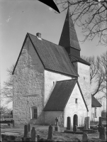 Den västra trappan som troligen byggdes på 1200-talet finns kvar idag och då den löper över den norra portalen var den sannolikt den direkta orsaken till att denna murades igen. Från trappan syns, i den norra muren, spår av två bjälkar vilka sannolikt har hört till den äldsta kyrkans bjälklag. Möjligen sparades de som ankarbjälkar för att slippa riva gavelröstet vid den andra byggnadsetappen då man troligen rev långhusets murkrön innan det åter påbyggdes med en våning.