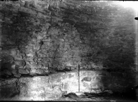 I långhuset är insatt ett dragstag i nordsydlig riktning med ankarslutar av runda stålplattor. I långhusets södra fasad är även inmurade två kolonntrummor(?) av röd kalksten.