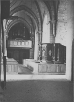 Nästa större förändring utfördes 1988 då kyrkorummet omdisponerades för att anpassas till ett modernt gudstjänstliv. Arbetet leddes av arkitekterna Magnus Ahrén och Kerstin Jacobsson i Linköping. Deras målsättning med restaureringen var "att trots vissa omdispositioner inte rubba interiörens harmoni och känsla av historisk autenticitet, inte heller den Curmanska helhetsgestaltningen." I samband med den omfattande renoveringen önskade man flytta korbänkarna från 1917, men Riksantikvarieämbetet ansåg då att de skulle stå kvar. Det blev en kompromiss där de innersta raderna bevarades, men vid nästa förändring som utfördes 2004 flyttades de och det innebar en upplösning av Curmans gestaltning av koret.