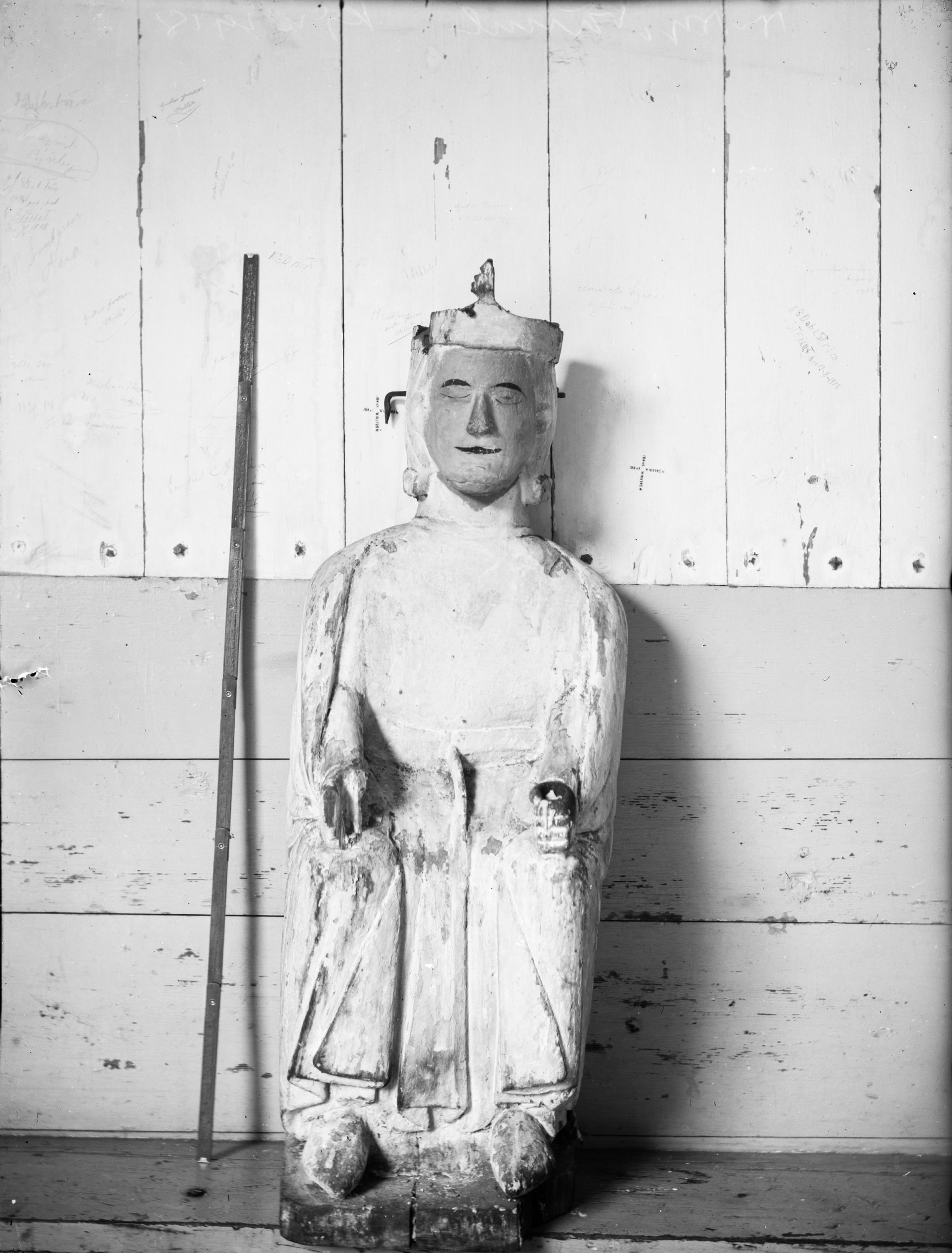 • Sankt Olofsbild av snidat trä. 1200-talet. Snabbinv.