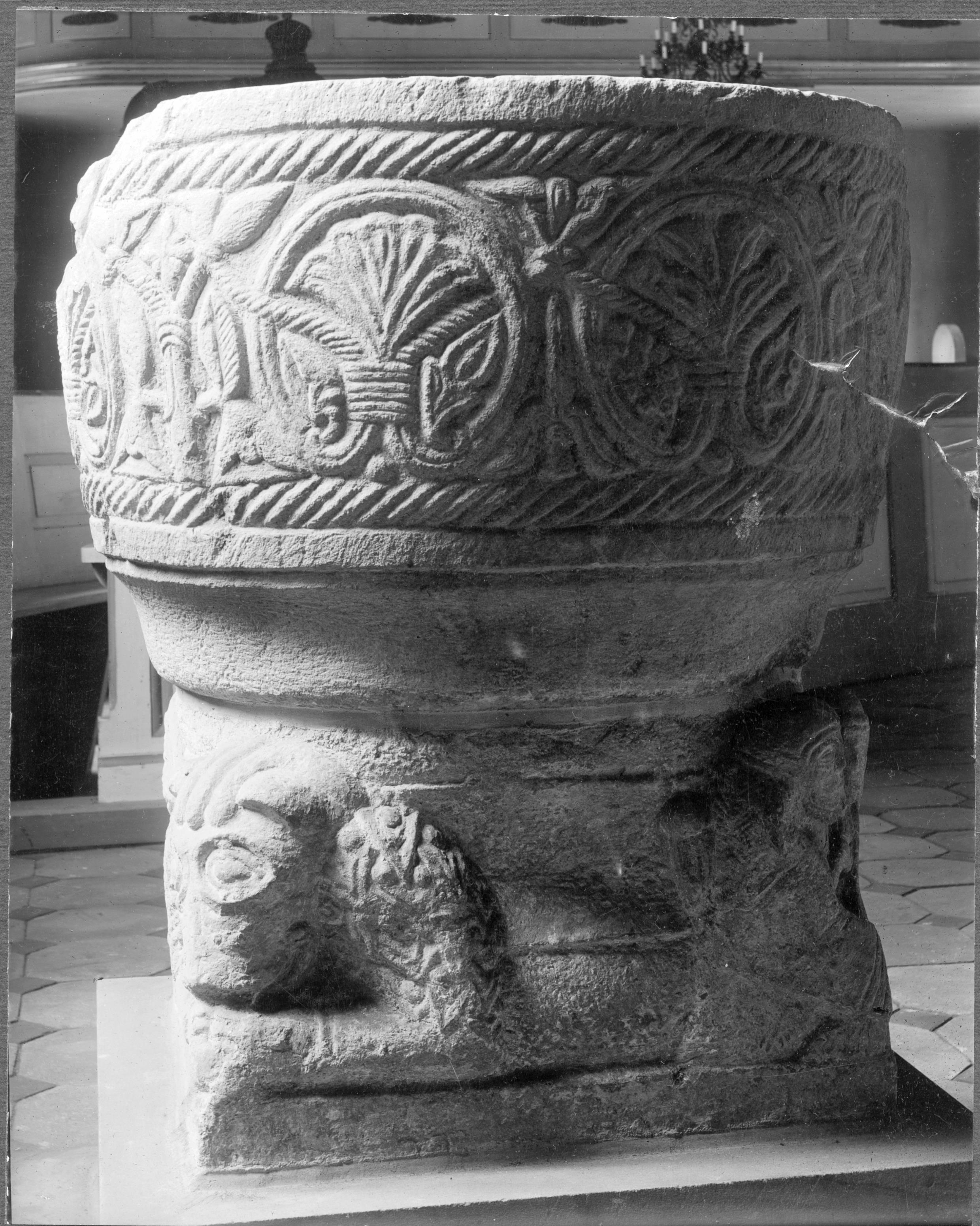 • Dopfunt från 1100-talet. På kantens översida runinskrift: "Martin mik kiardi" = Martin gjorde mig.