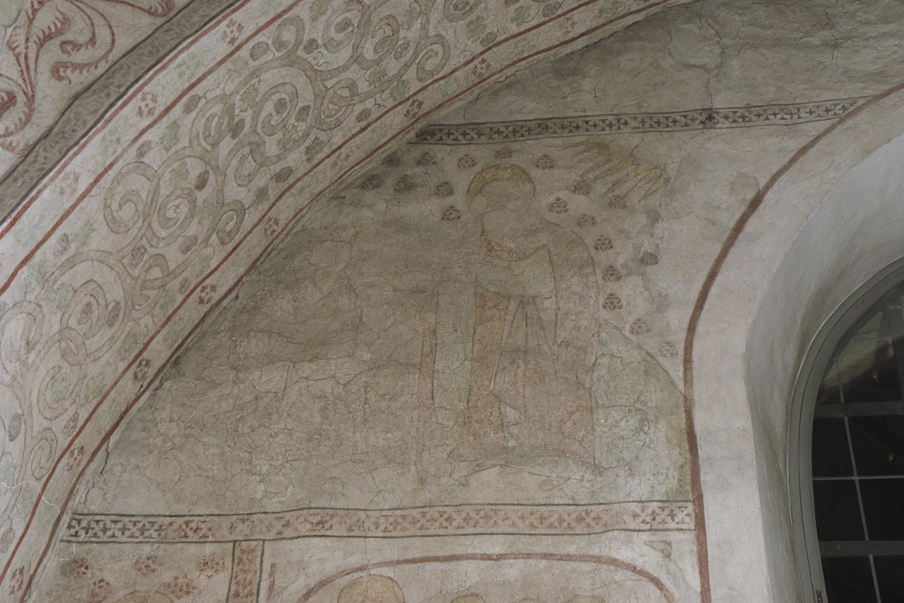 • Kalkmålning, södra väggen, Joakims och Annas möte vid Gyllene porten.