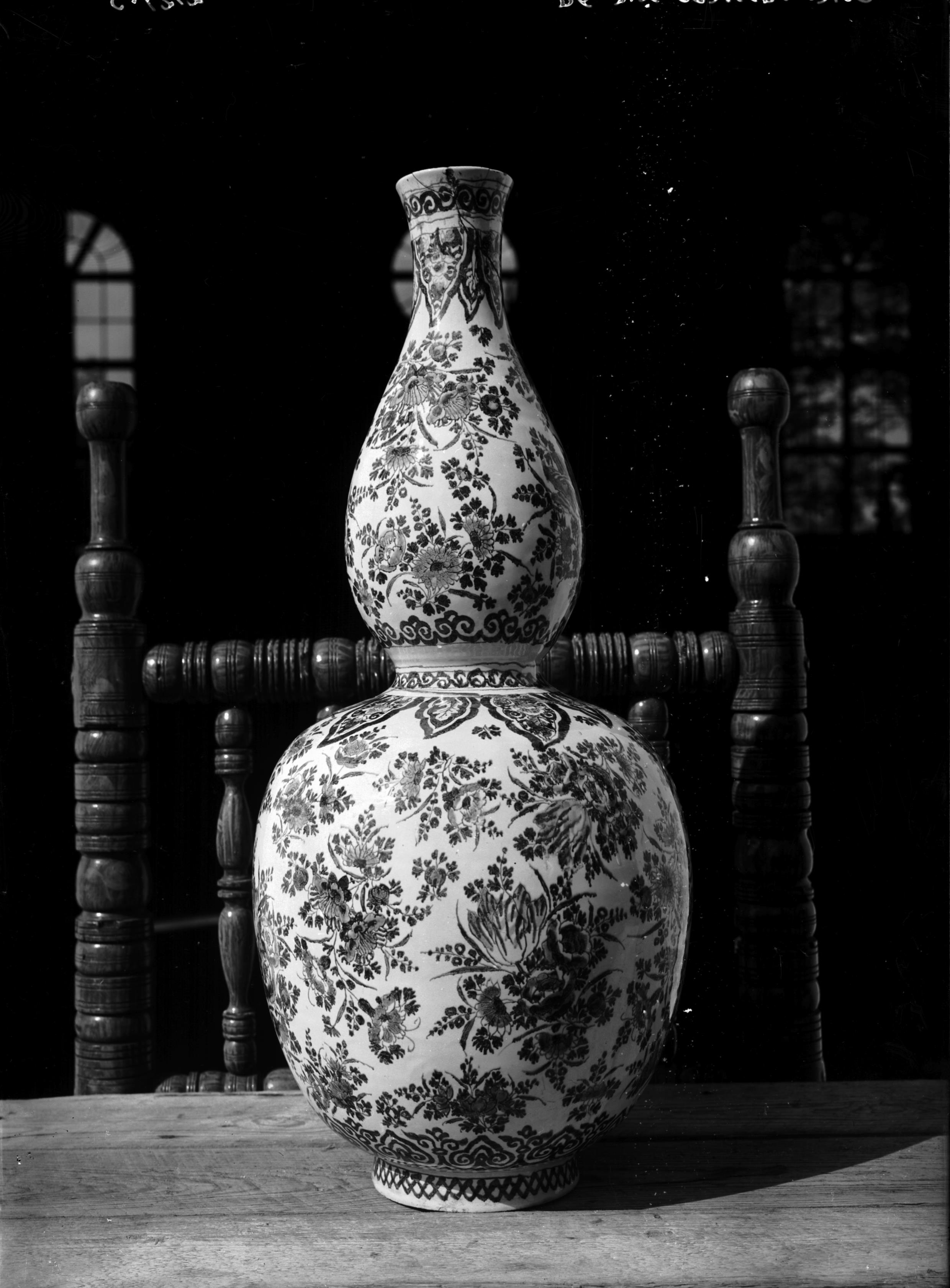 • Kurbitsvas av fajans med blå dekor. 1700-talet.