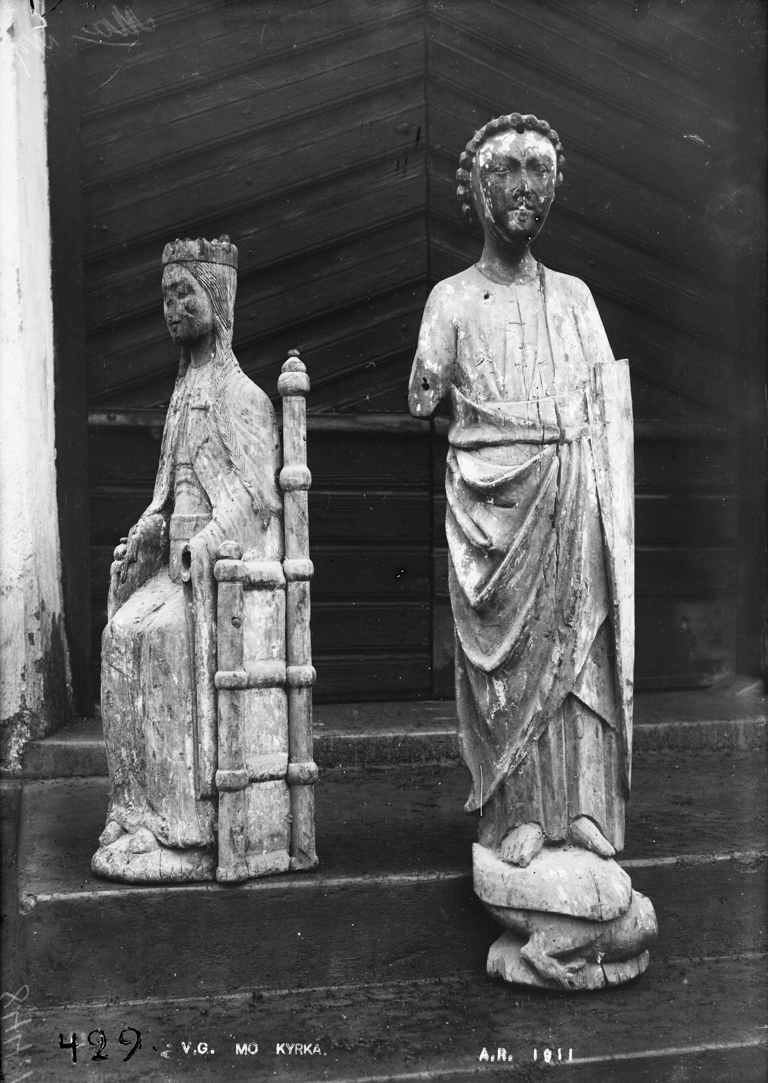 • Träskulpturer av trä, föreställande Madonnan och S:t Mikael. Medeltida.