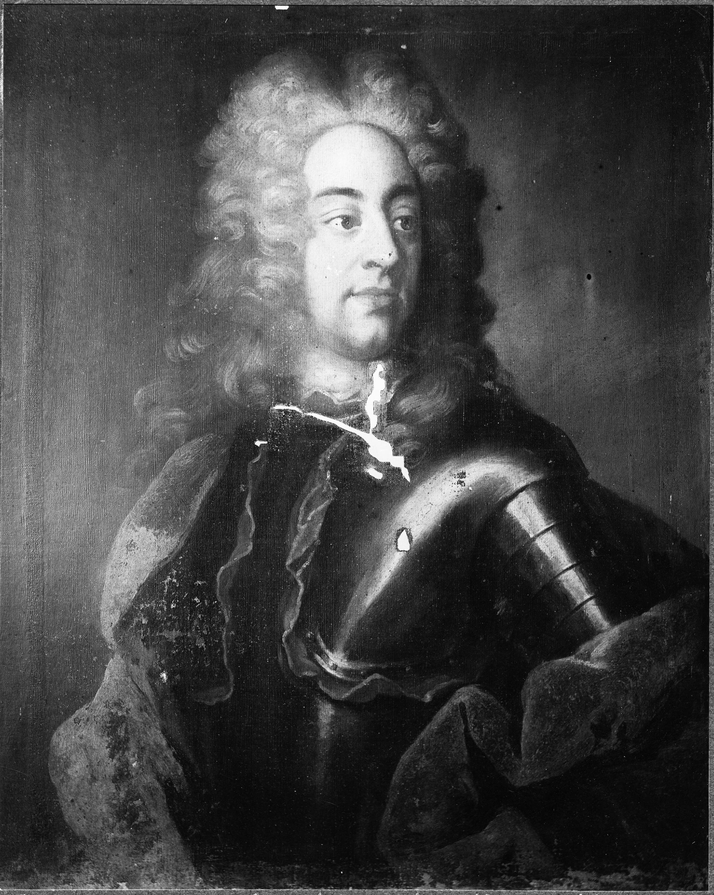 • Porträtt, möjligen föreställande överhovjägmästaren Carl Gustaf Spens. Före konserveringen av G. Jaensson, Nationalmuseum.