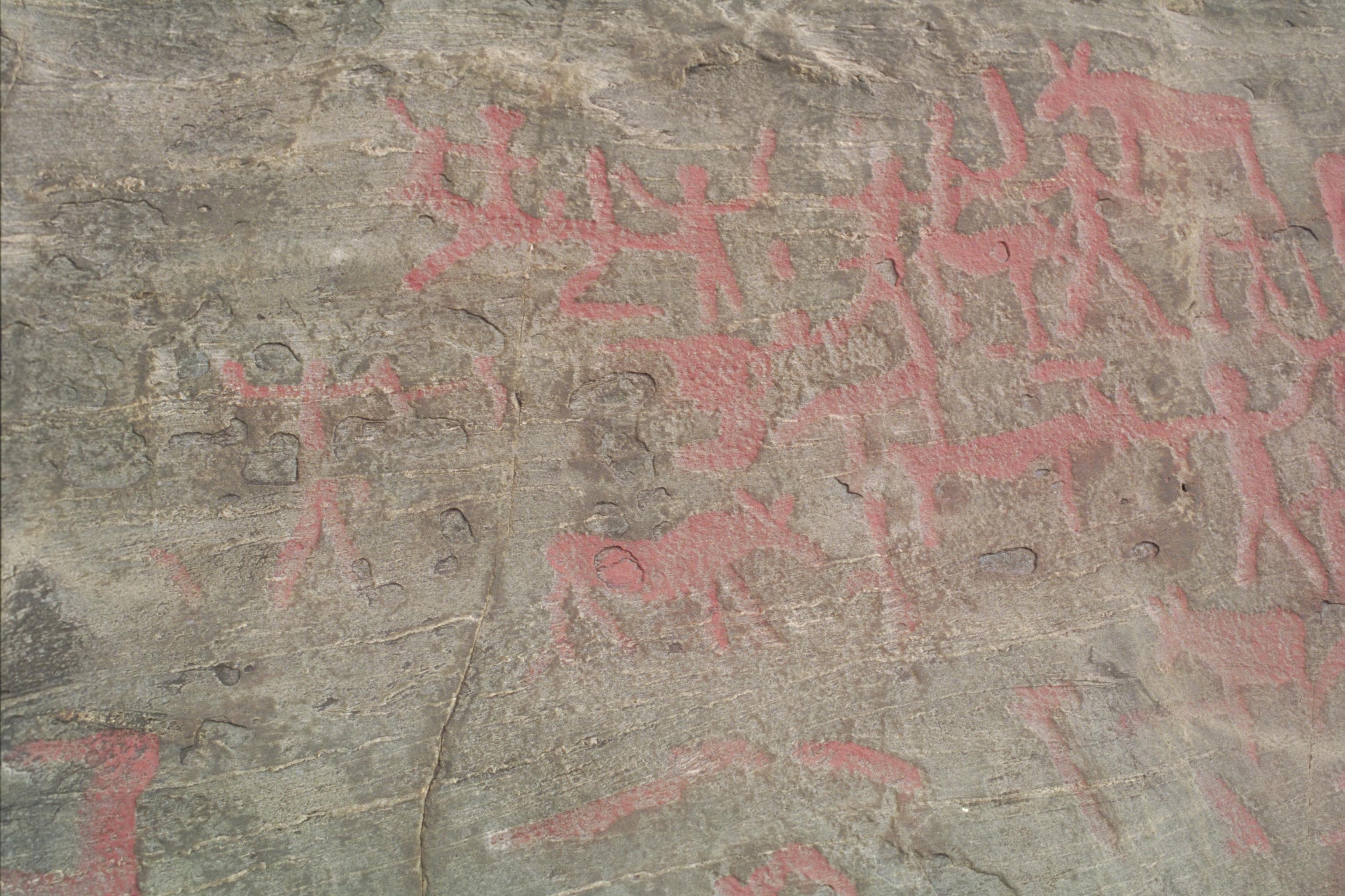 Notön, älgar och människofigurer. Fotosyfte: Publicering