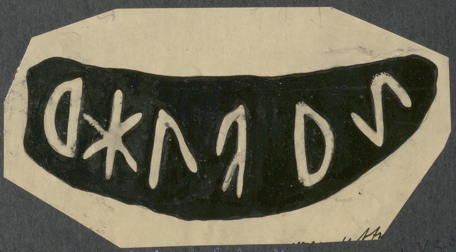 Runinskrift på medeltida dopfunt (Vg249 Borgstena) nu i Statens historiska museum, inv.nr SHM 4385. Inskriften har tolkats som "Paradis". Fotosyfte: