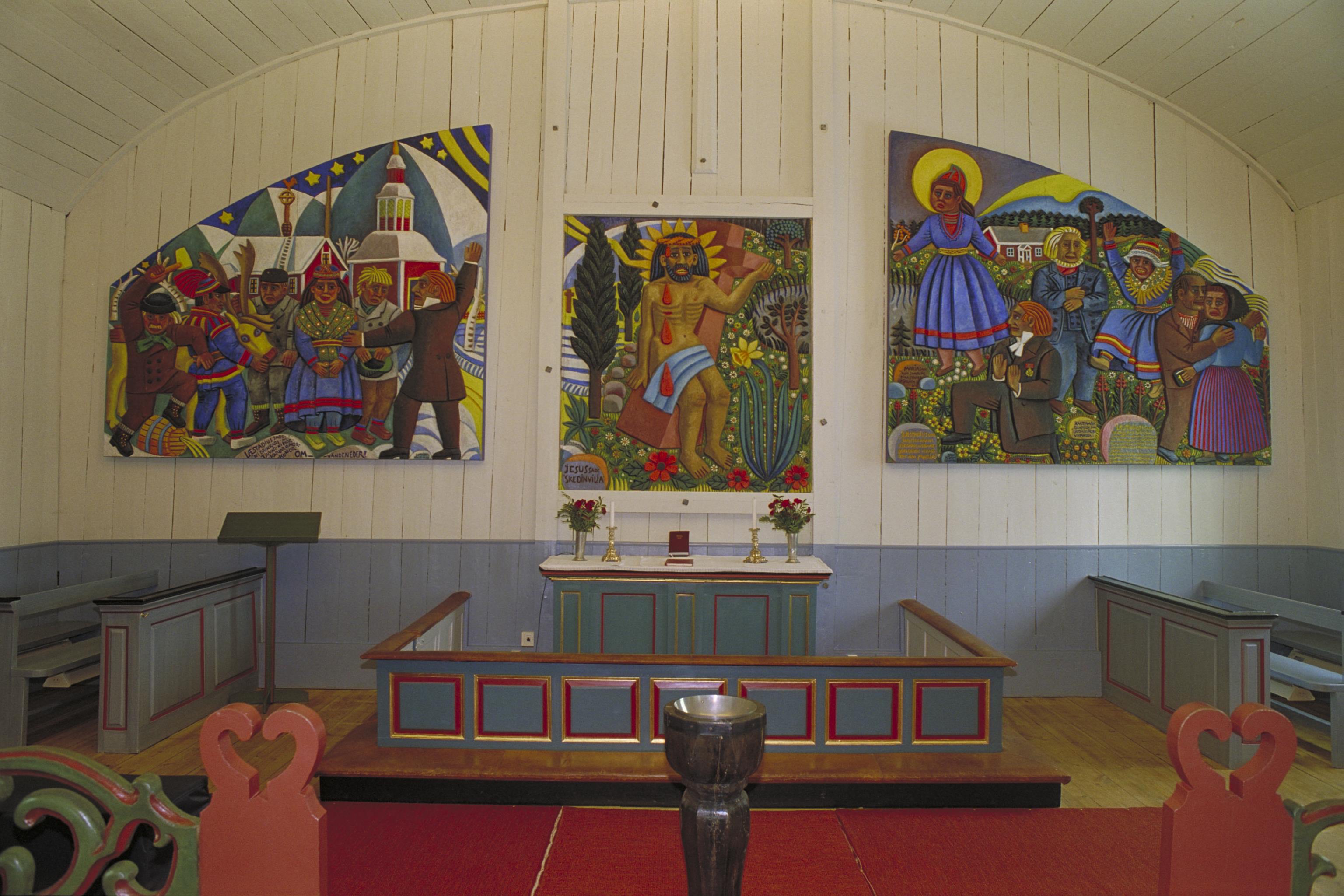 Triptyk, av Bror Hjorth, på östväggen, från 1958 i relief, framställande Lars Levi Laestadius. Fotosyfte: Inv/dok