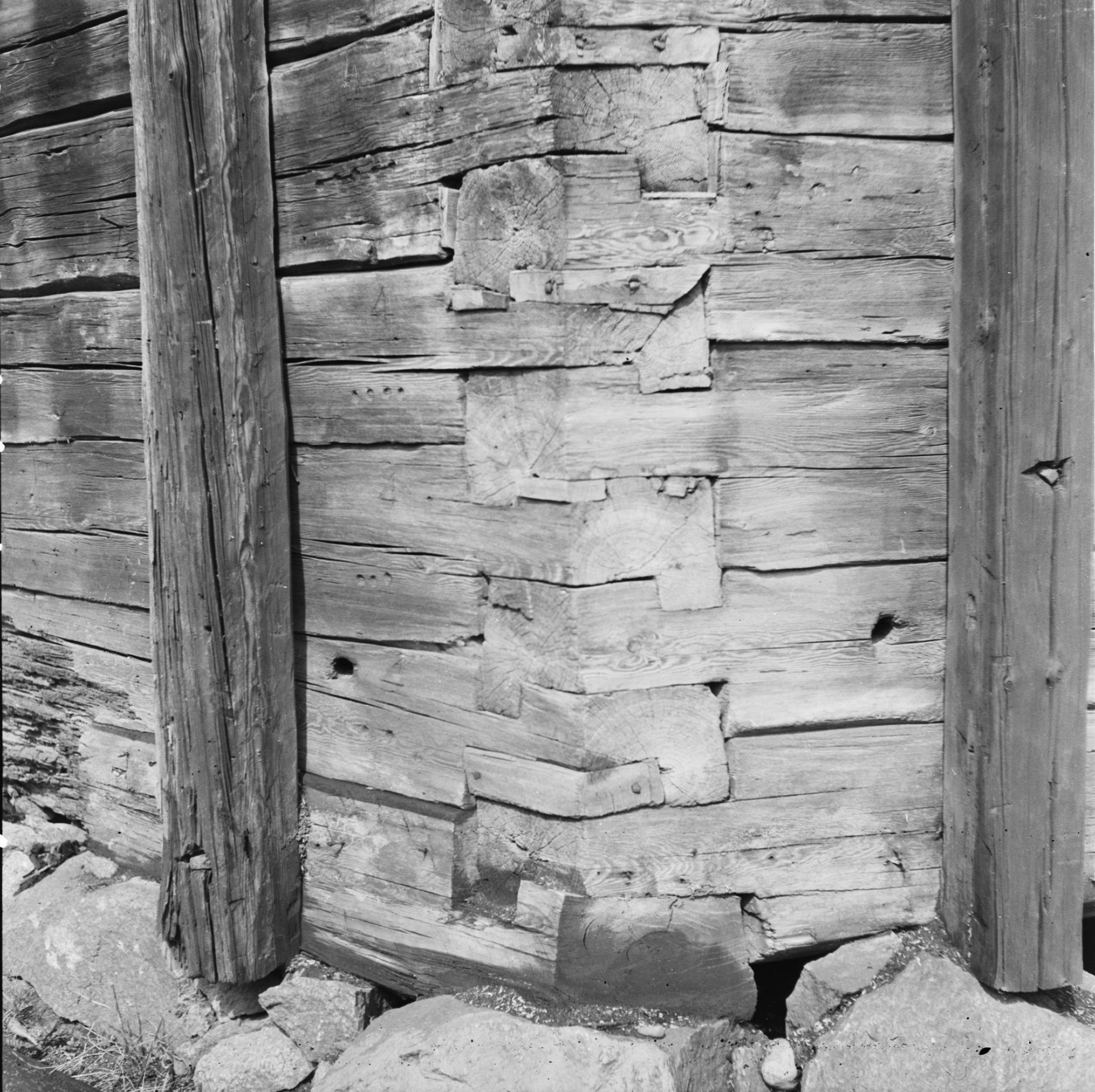 • Detalj av timrad knut.