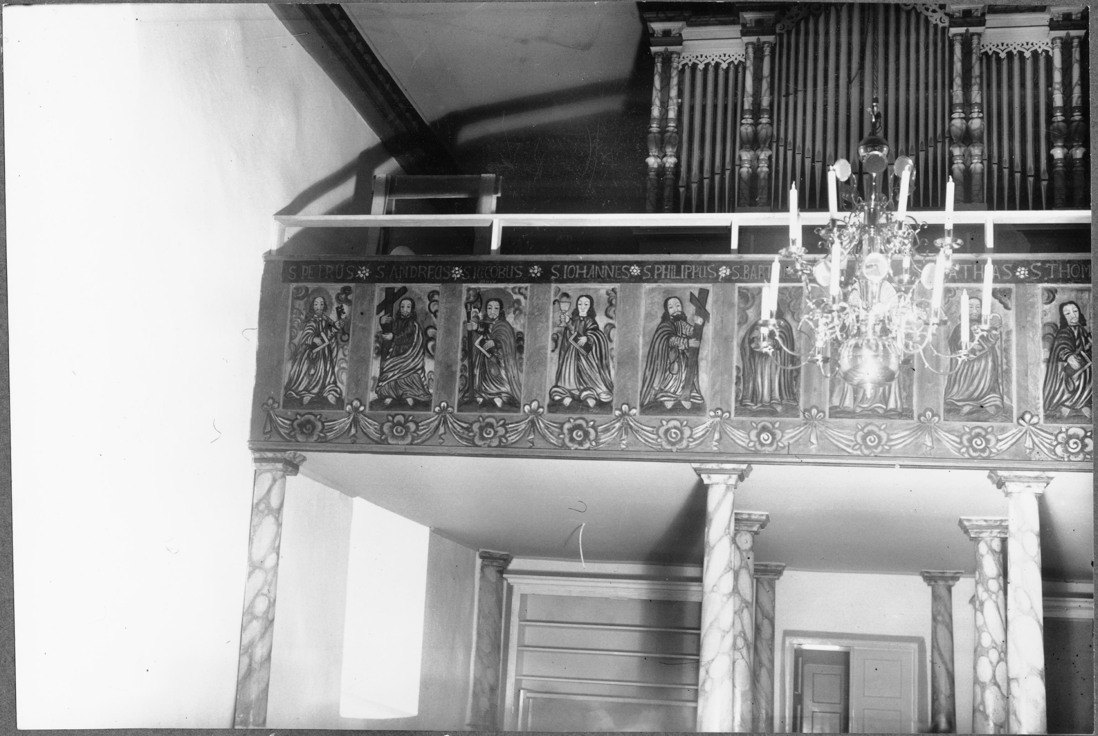 • Läktarbröstning, målning från 1600-talet, södra delen. Före konserveringen 1967.