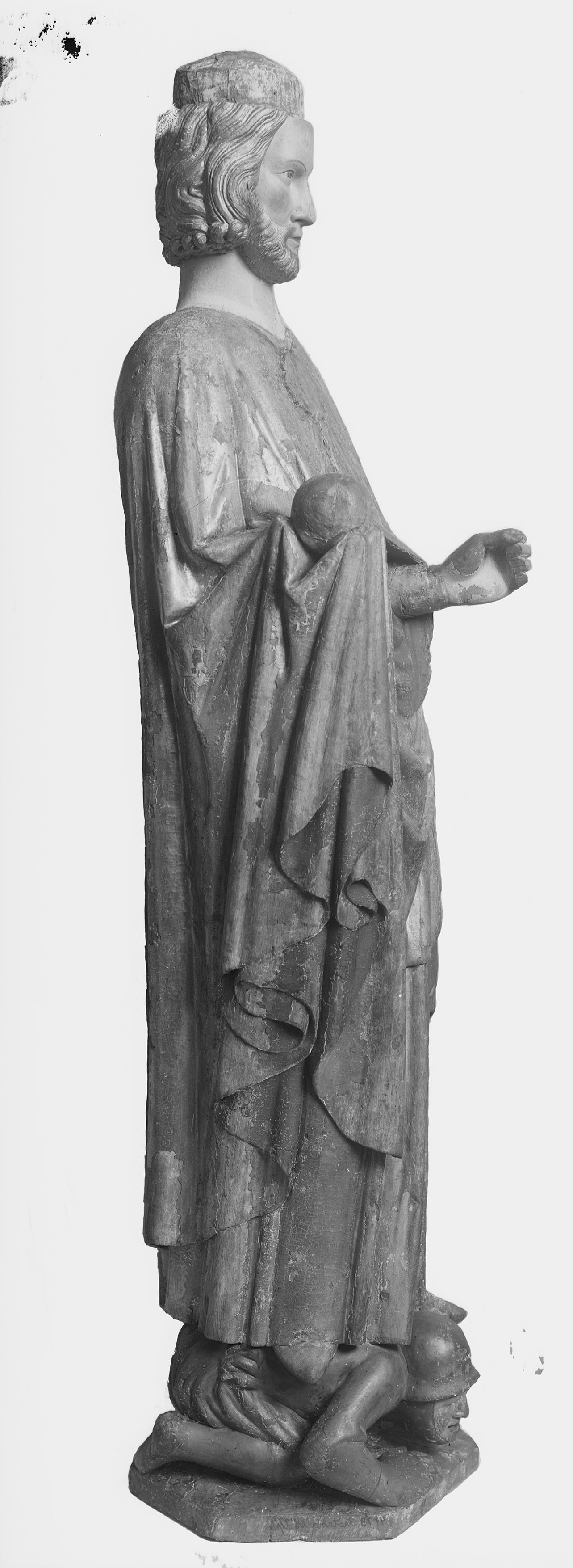 • Träskulptur: Sankt Olof, helfigur, från sidan.