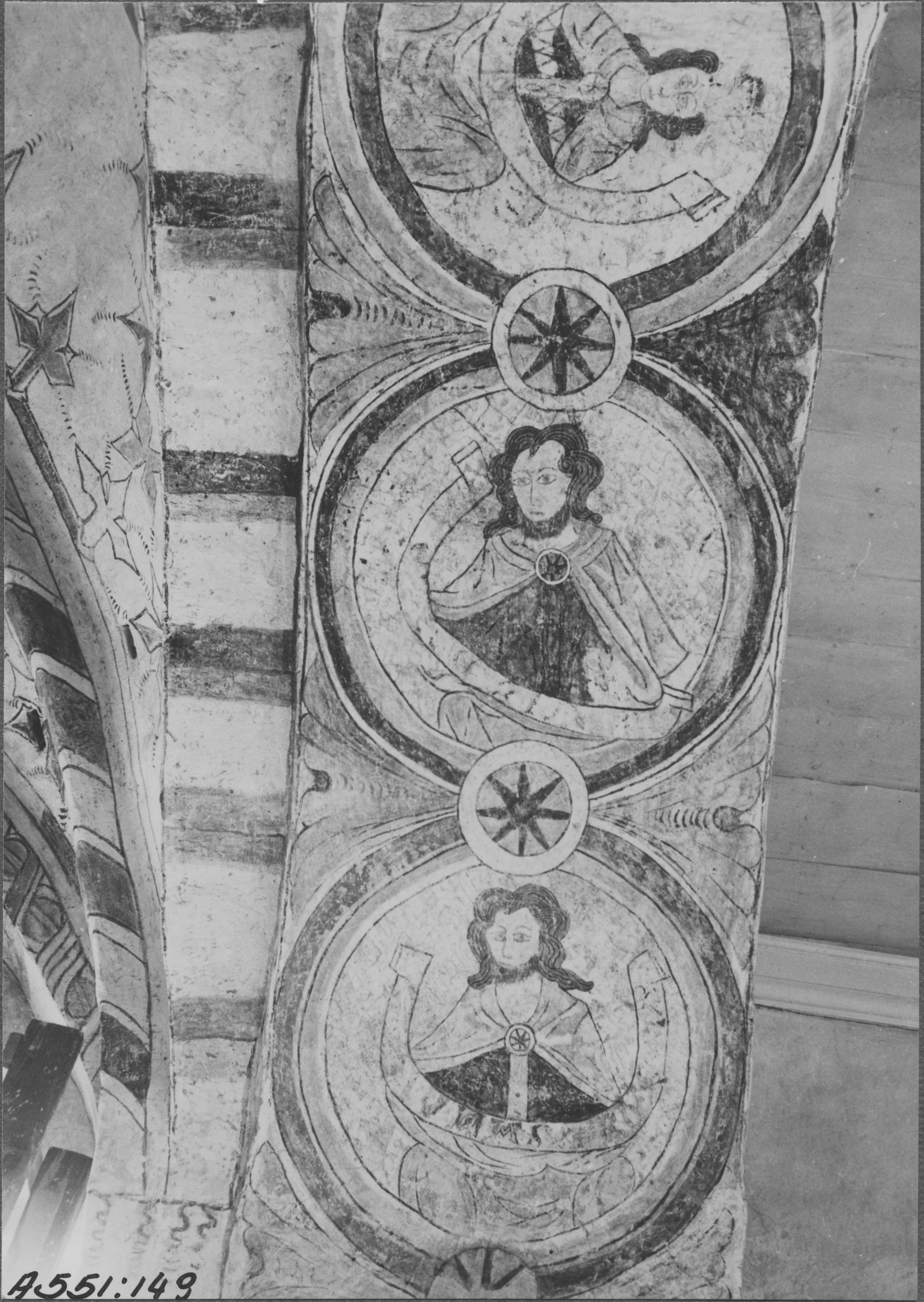 • Södra delen av korbågen efter restaureringen 1945.