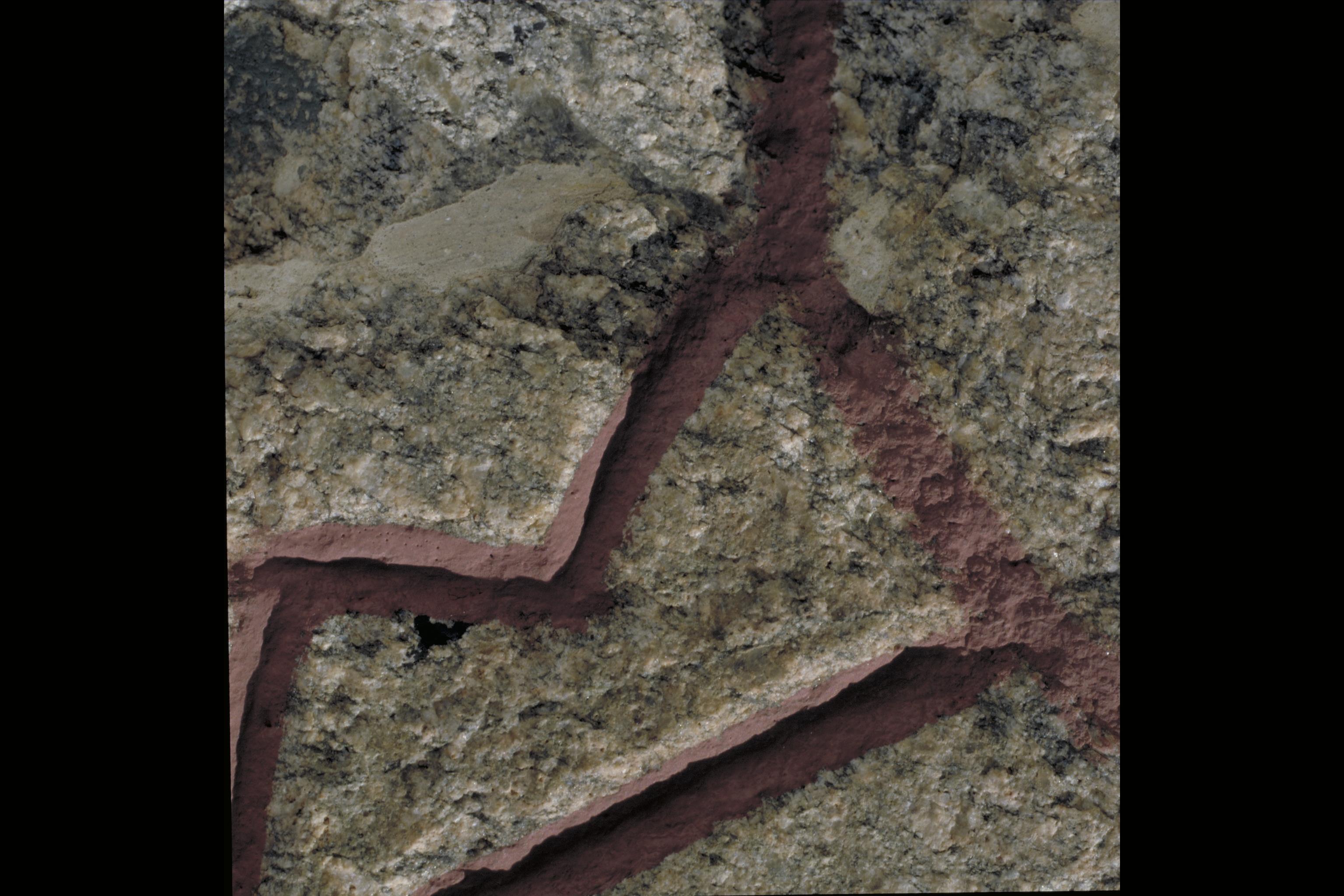 • Detalj av ristningen på runstenen U513, vilken är inmurad i Rimbo kyrkas östra gavel.