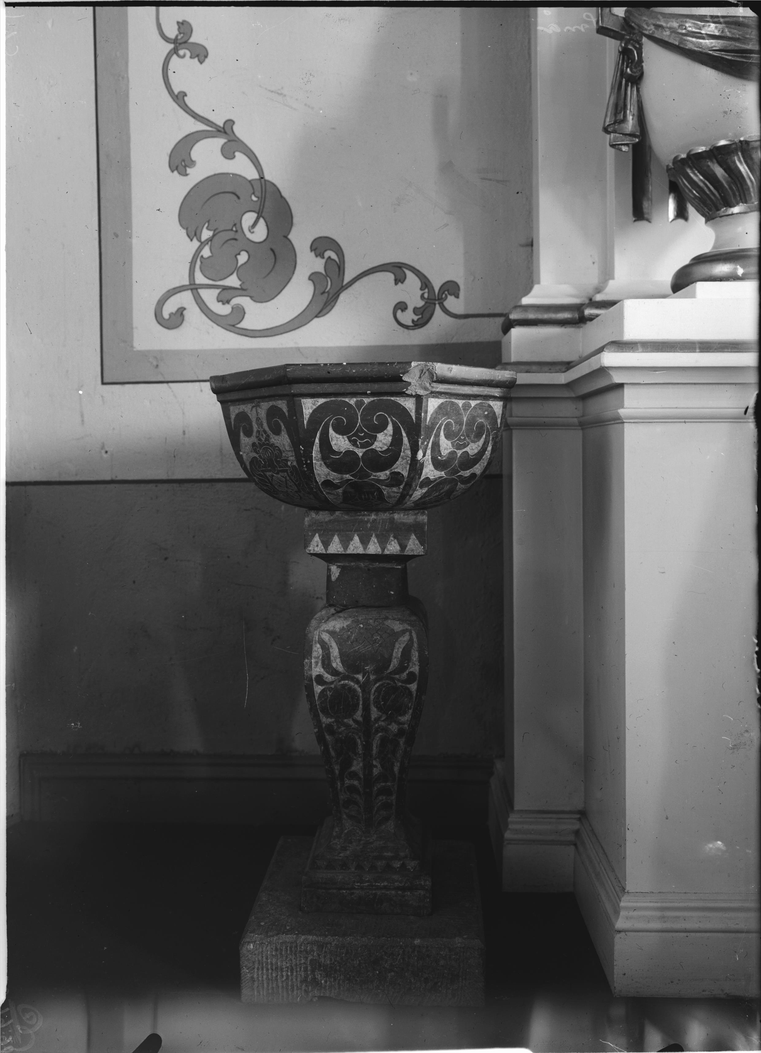 • Dopfunt av röd kalksten. Snabbinv.