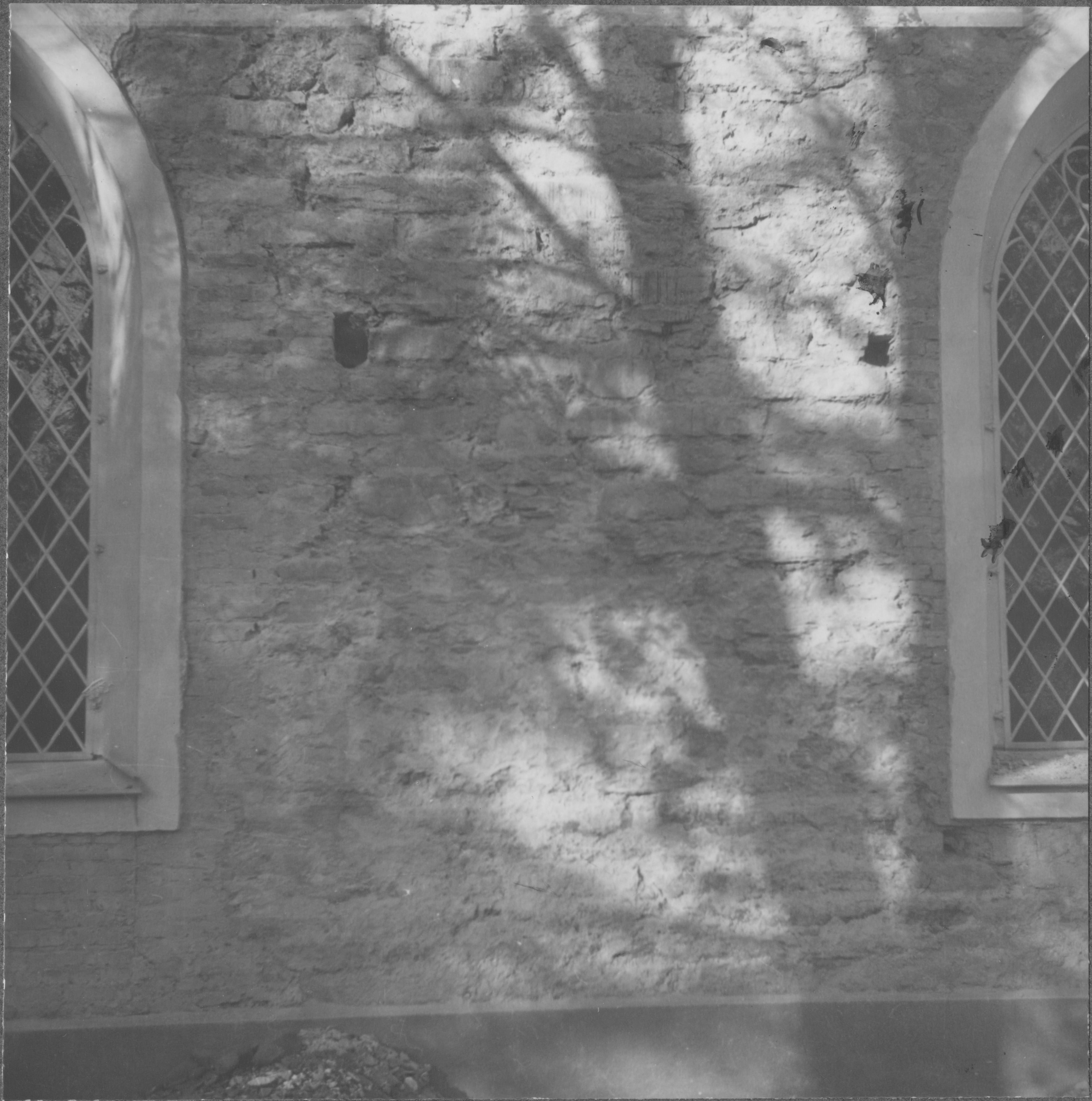 • Kyrkans södra fasad. Under restaurering 1952-1953 under ledning av arkitekt Kurt von Schmalensee. Detalj.