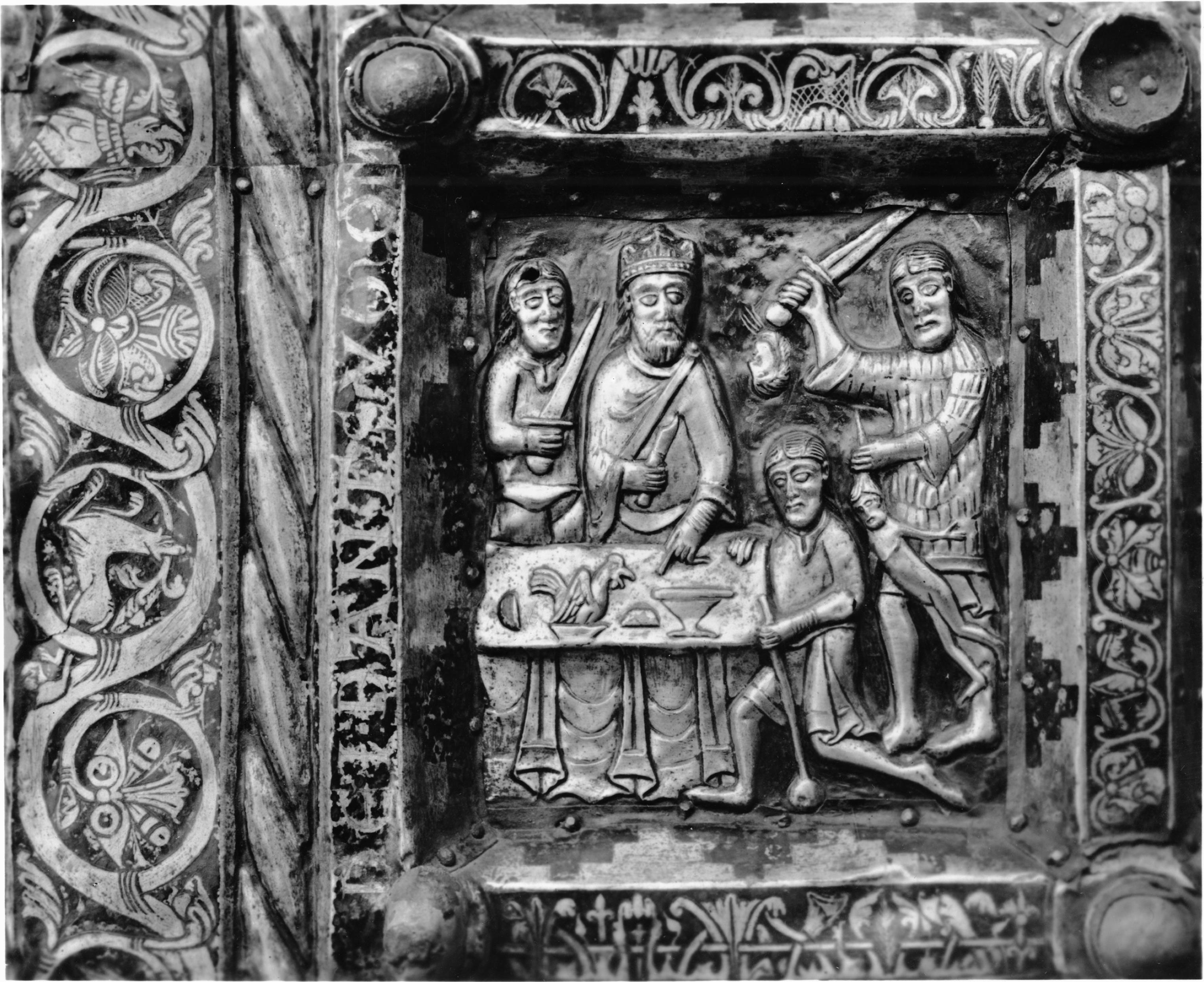 • Antemensale, driven och förgylld koppar, 1100-talet, detalj. Vykort.