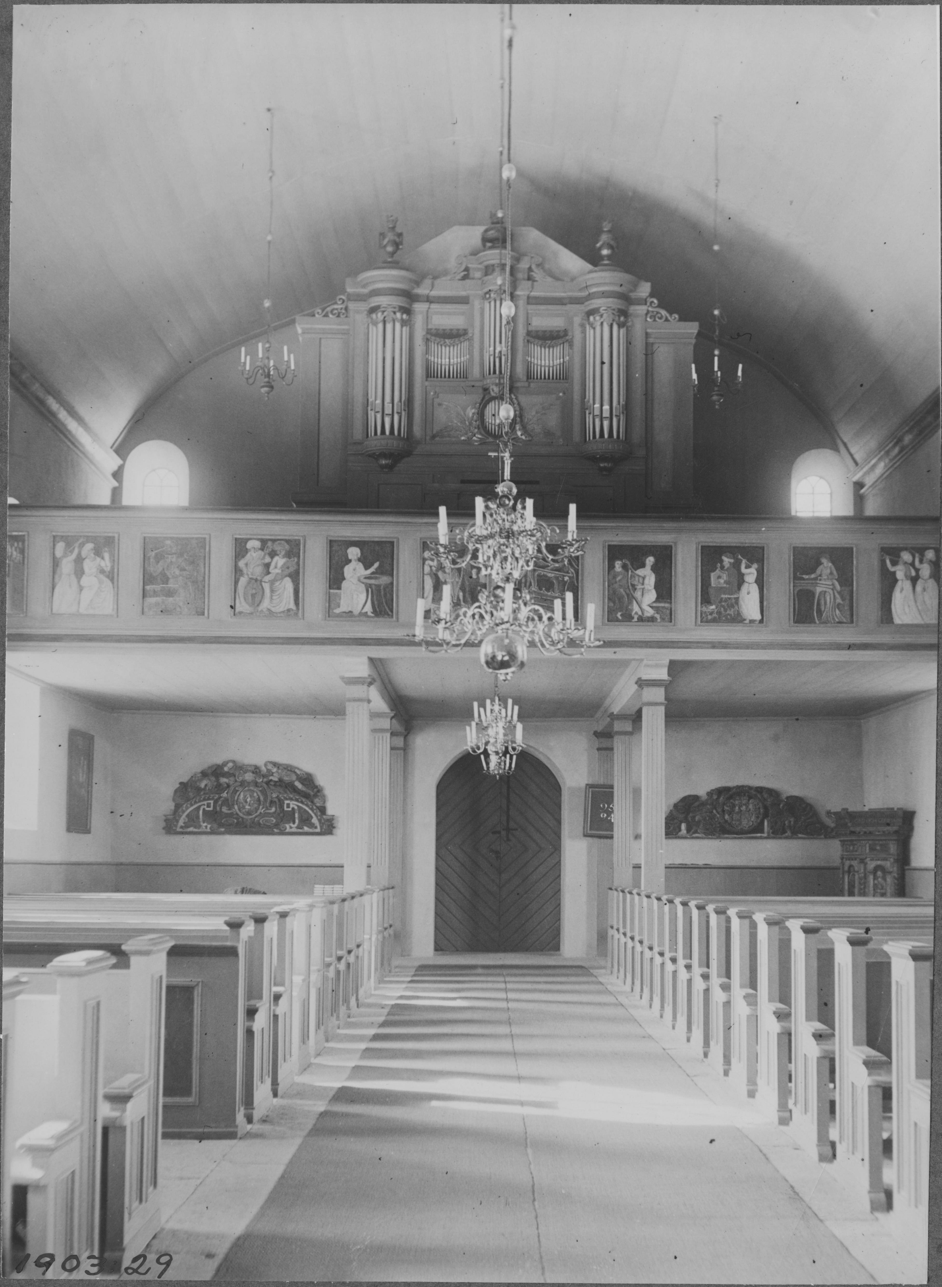 • Orgel byggd 1783 av Pehr Schiörlin. Orgelfasaden ritad av Olof Tempelman, dekoren tillverkad av bildhuggare Carl Fredrik Berurling. Målningarna föreställande Davids orkester utförda 1806 av en målare Hultgren.