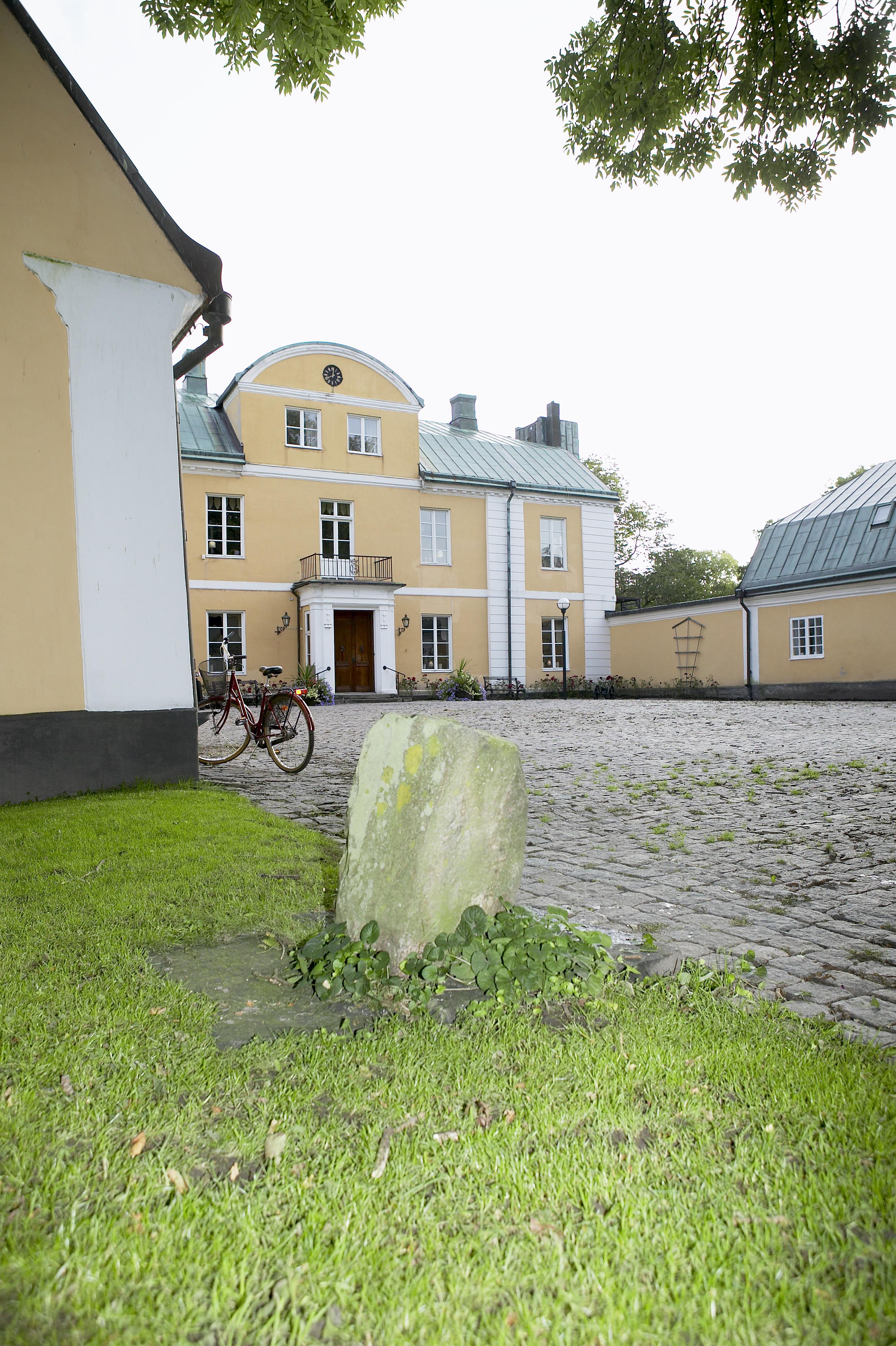 • Runstenen i förgrunden är Dr352 Vapnö slott.