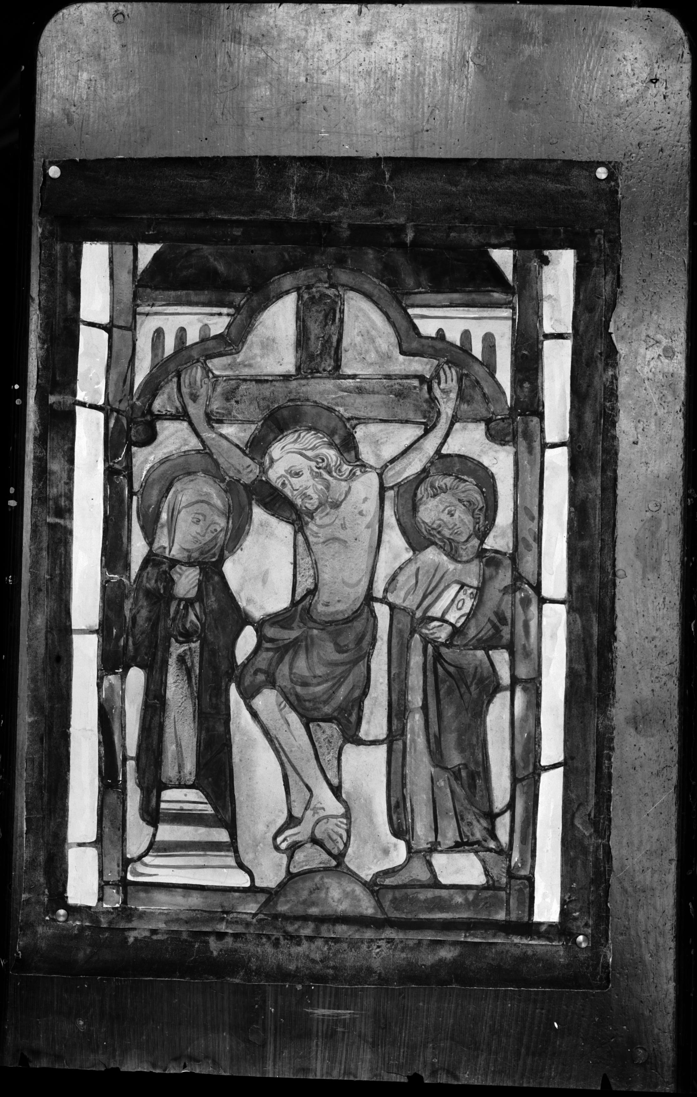 • Glasmålning i korets östra fönster. Medeltida. Foto av efter kopia av Gustava Meukow, år 1891.