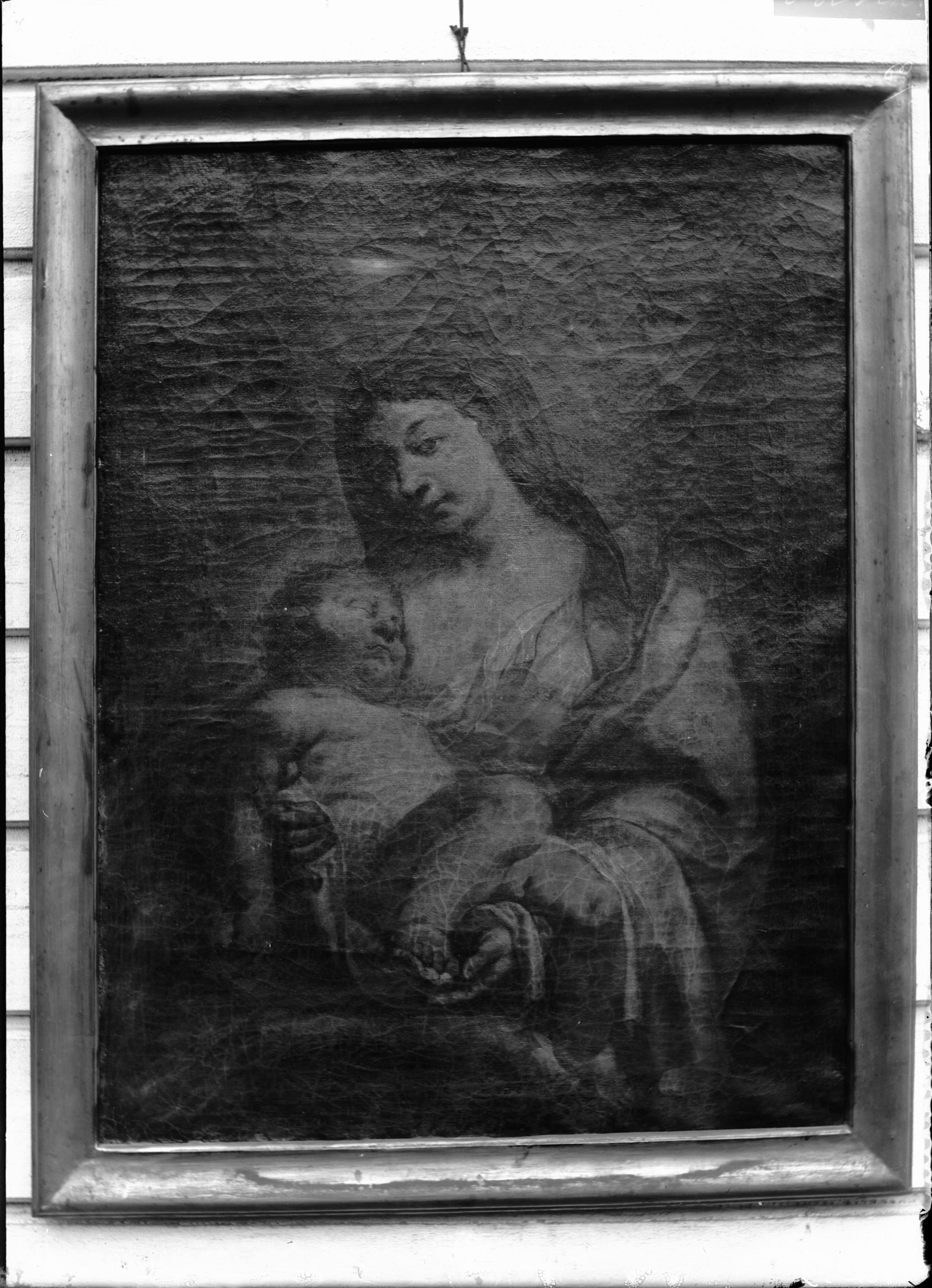 • Oljemålning föreställande Madonna med barnet, 1600-talet.