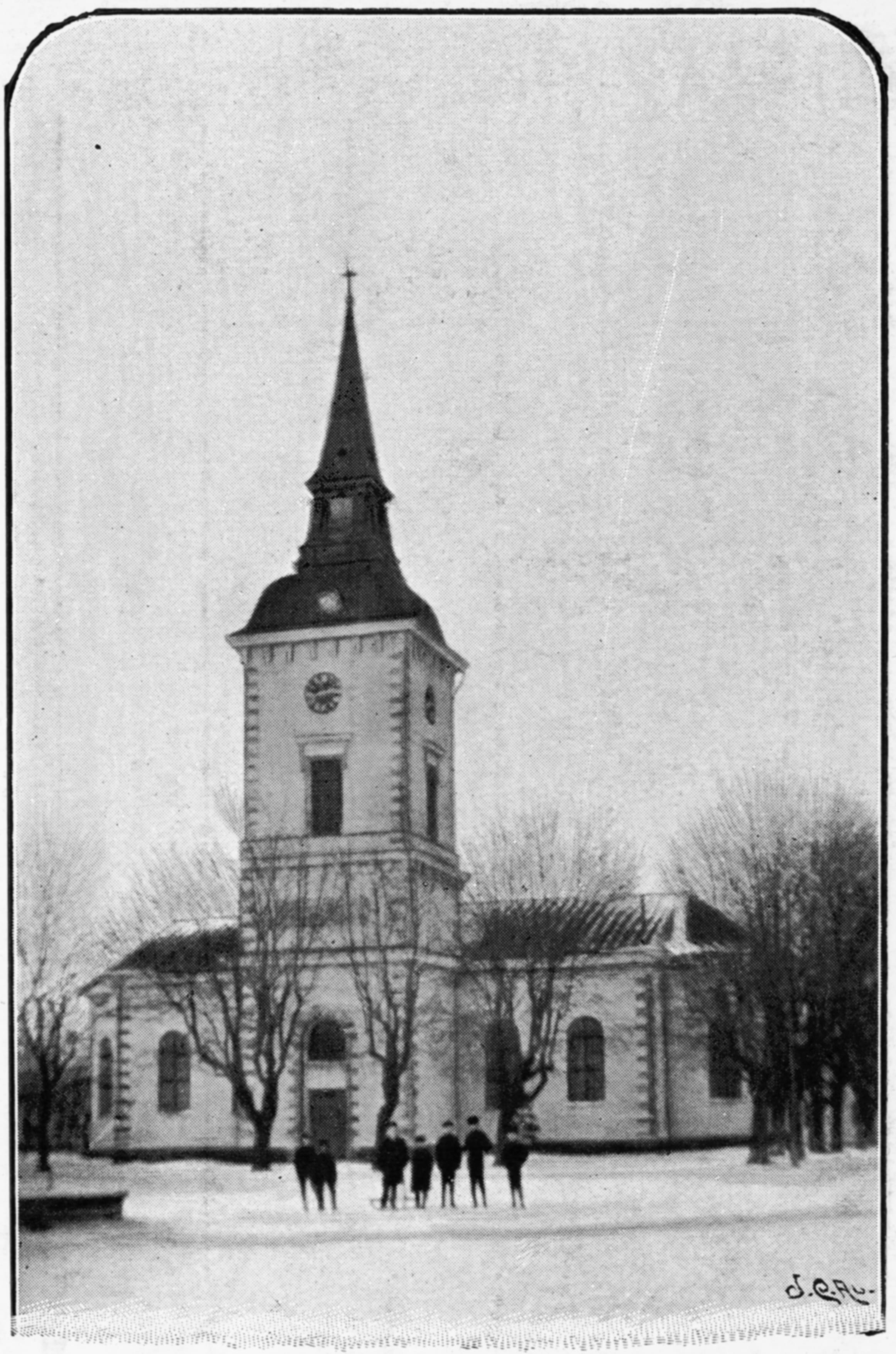 • Kyrkan från sydöst. Vykort.