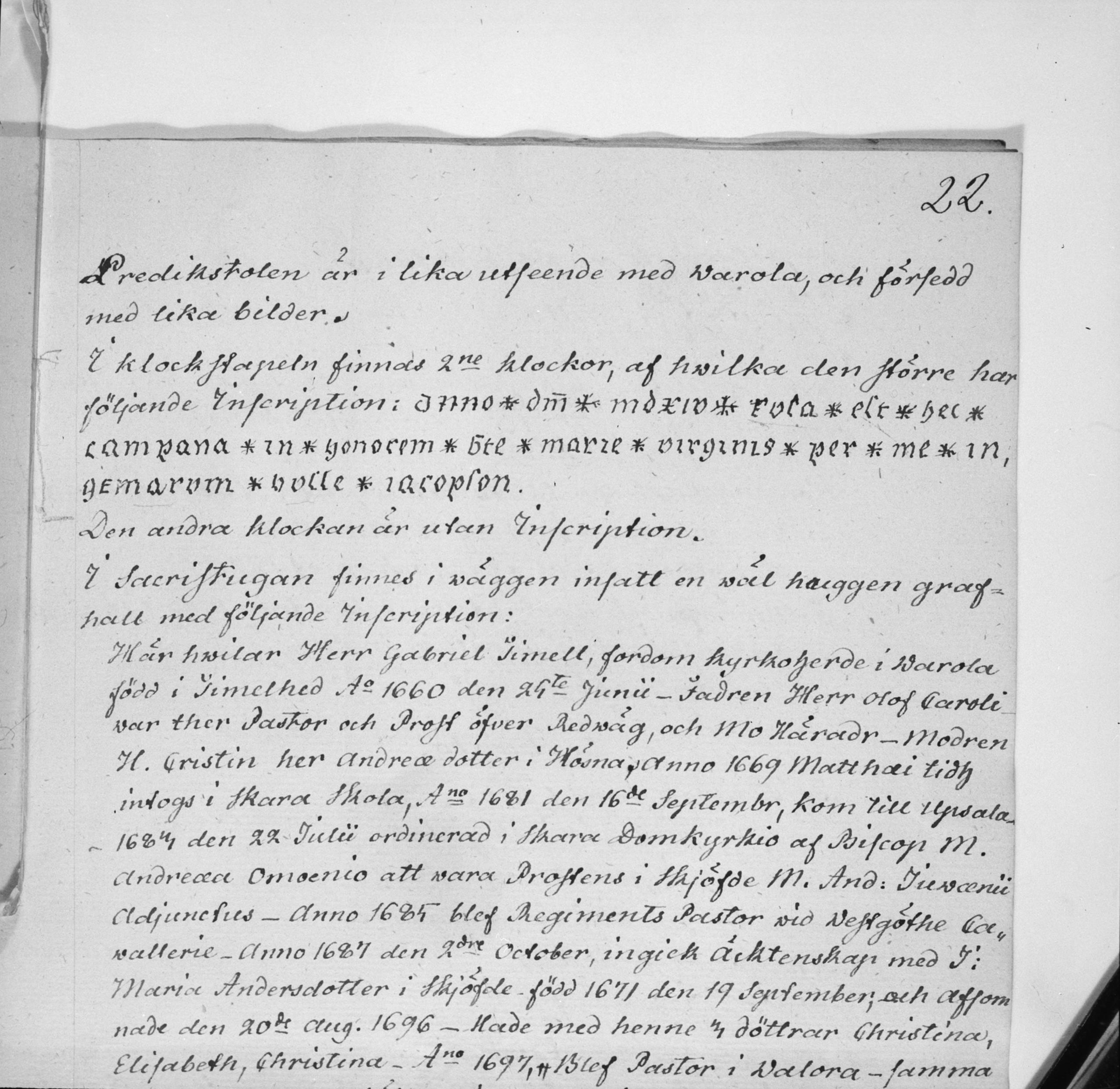 • Inskrift på klocka, ur inventarieförteckning i ATA från 1828, avfotograferad.