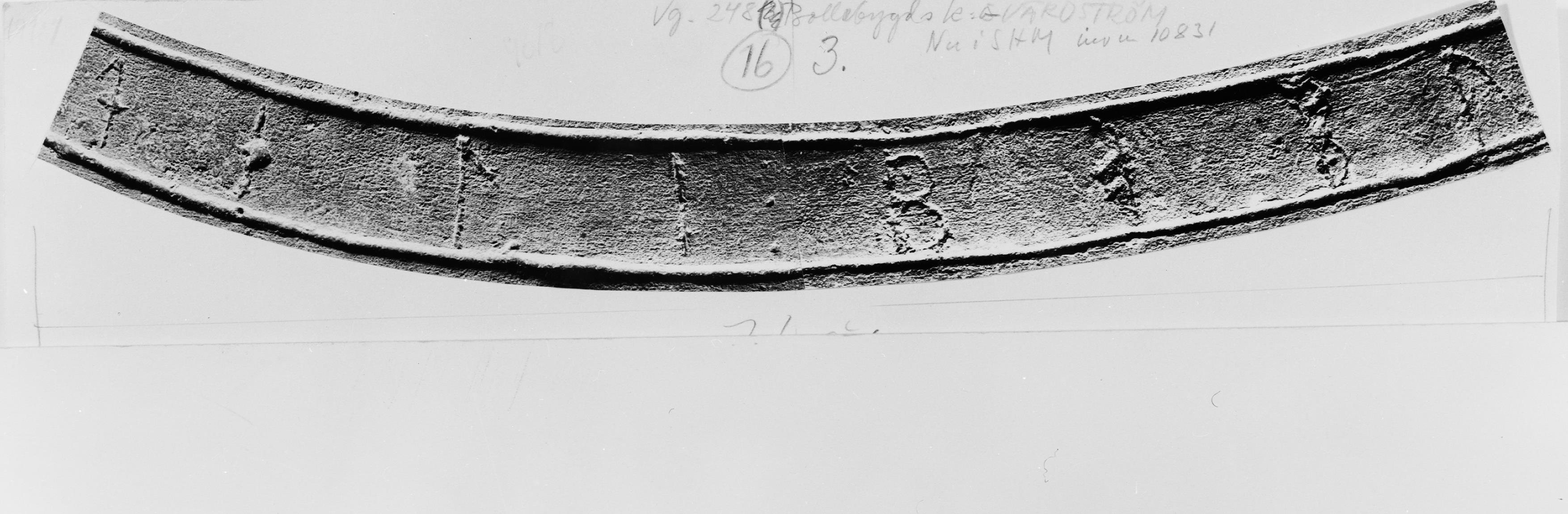 • Klocka, medeltida, detalj av runinskrift.