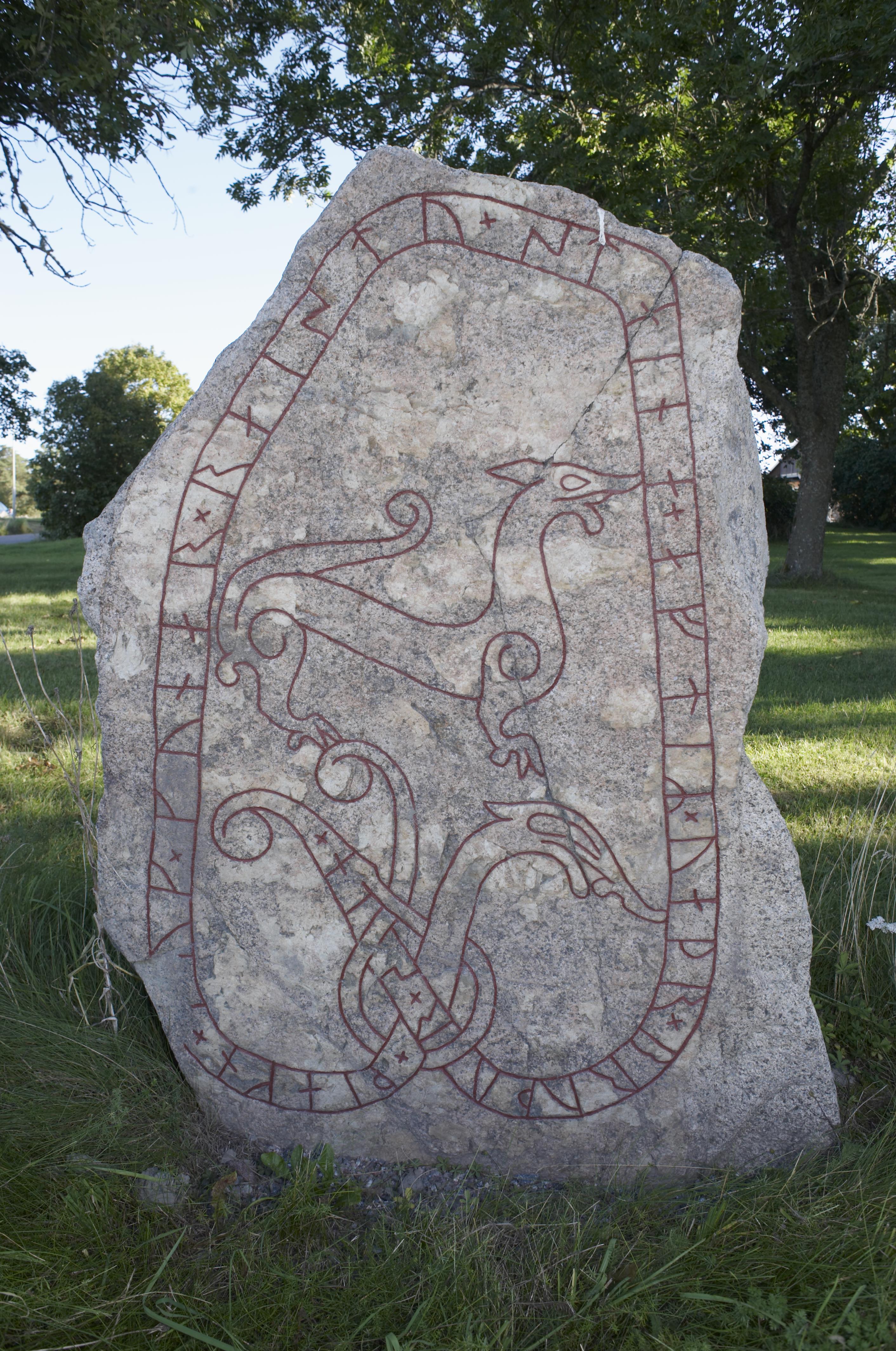 RAÄ-nummer Funbo 1:1. Inskriften lyder: "Tjägn och Gunnar reste stenarna efter Väder, sin broder". Fotosyfte: Dokumentation
