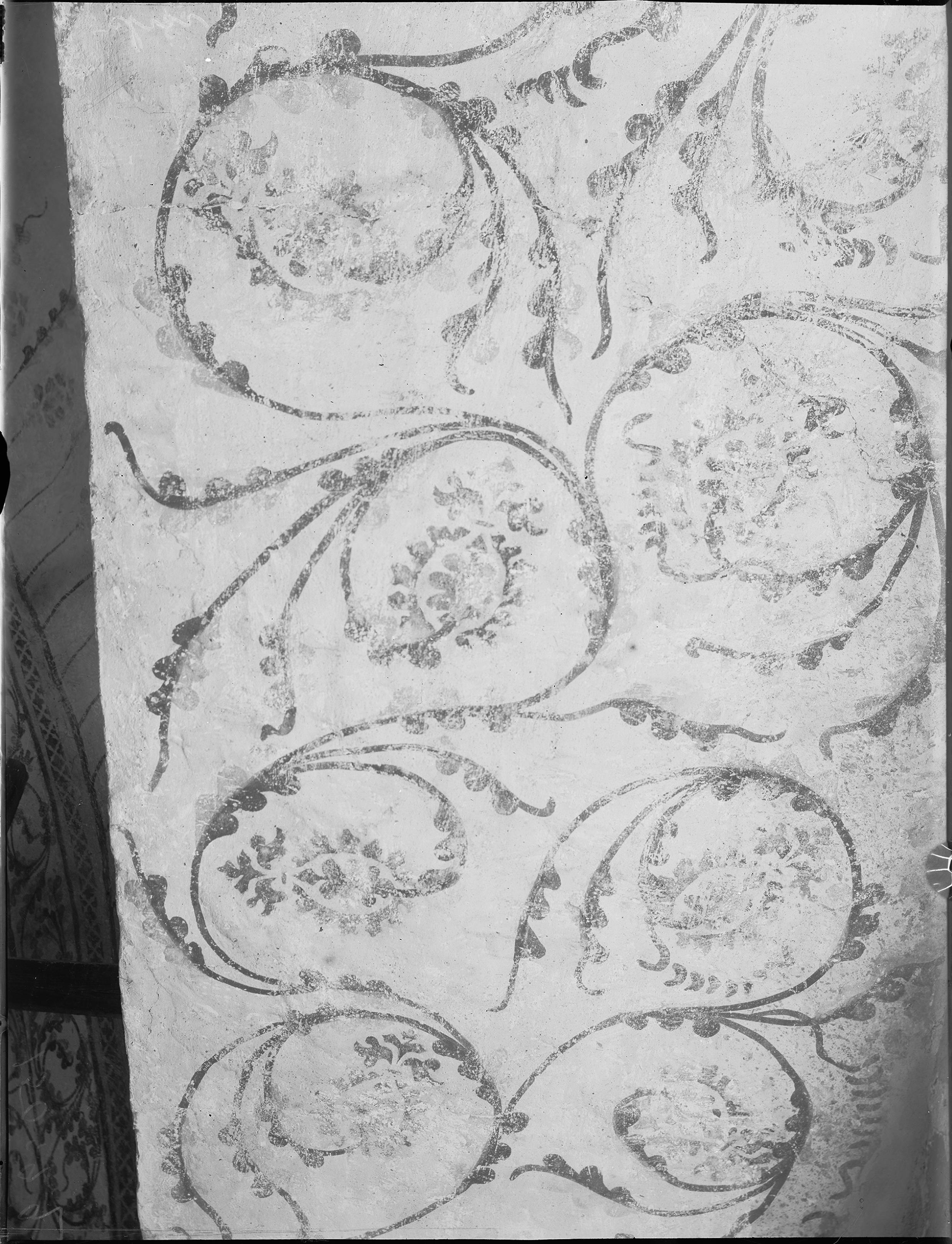 • Kalkmålning i travé 6. Södra sköldbågen. Före restaureringen 1915.