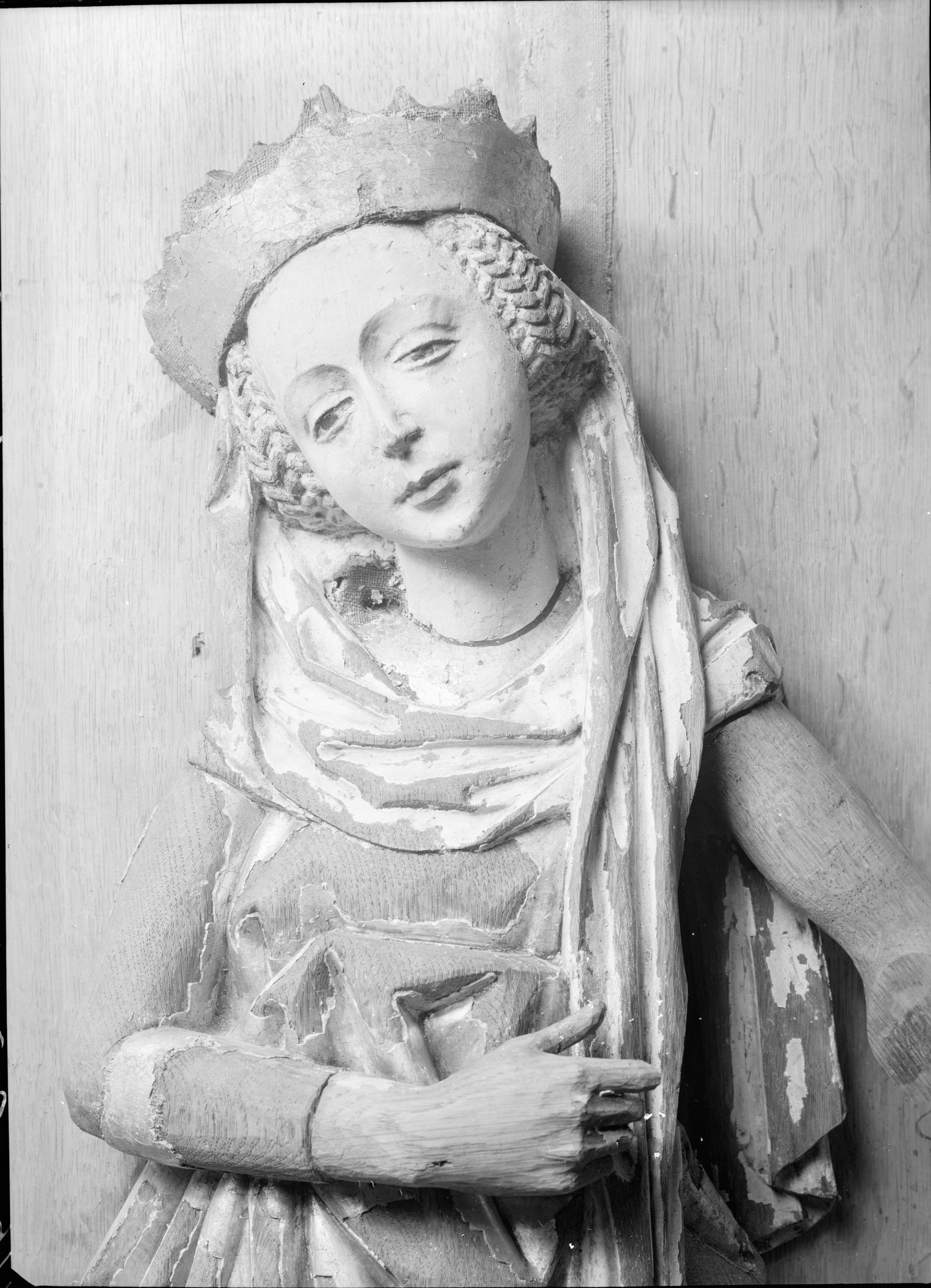 • Altarskåp, tillverkat av Johannes Stenrat i Lübeck 1471, detalj, vänstra flygelns insida, kvinnligt helgon.