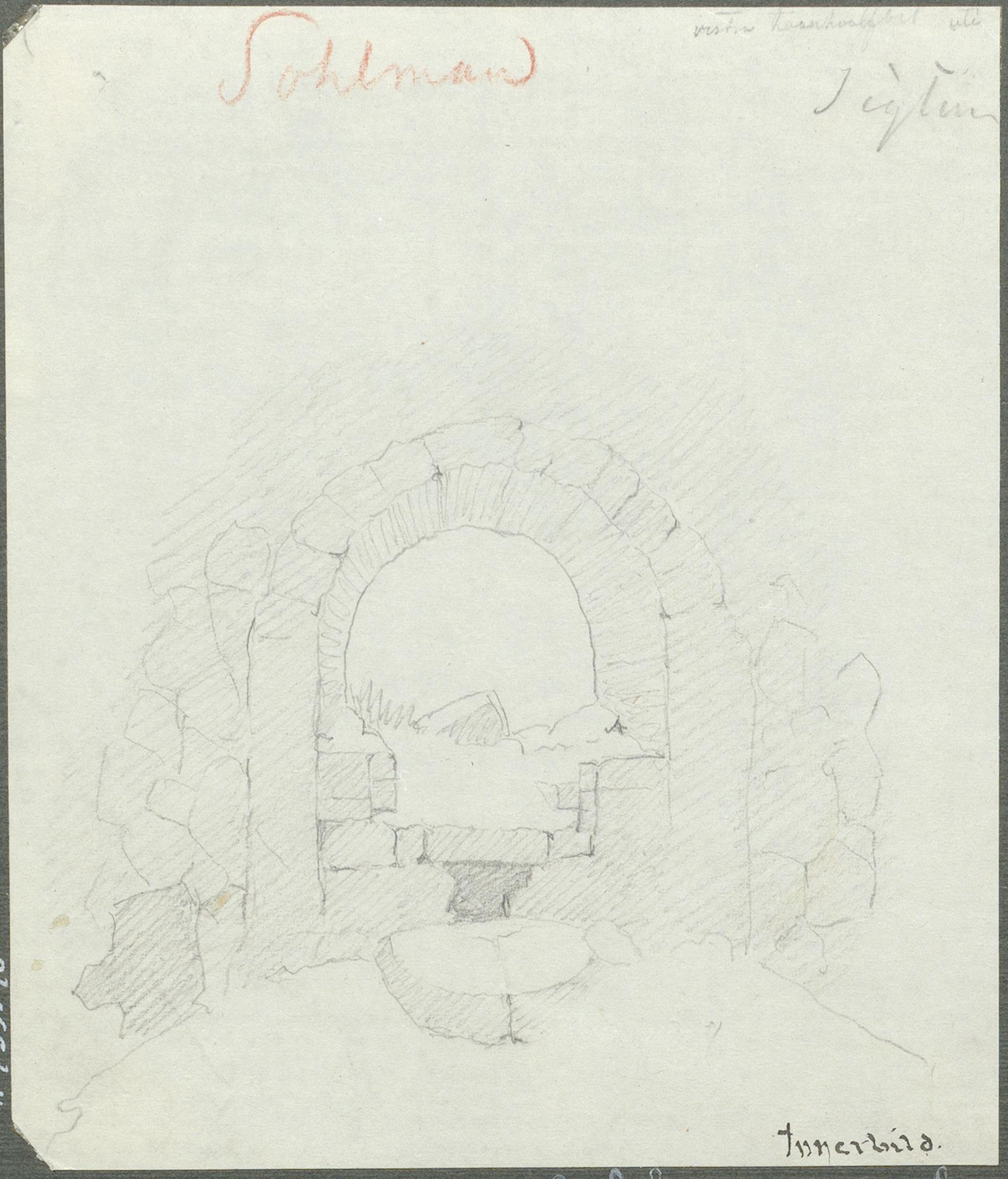 • Raä-nr: Sigtuna 22:1. Interiör. Blyertsteckning, troligen från 1800-talets mitt, ur Sohlmans samling