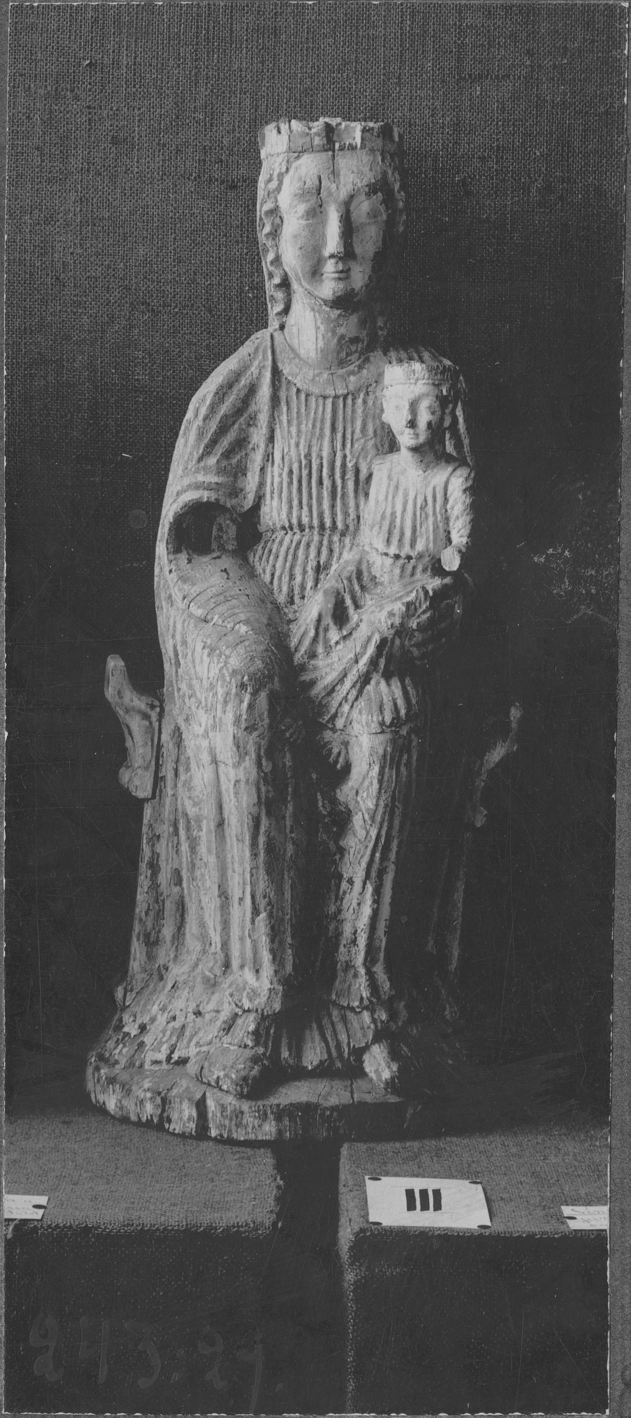 Madonnaskulptur av trä, från 1200-talet. Från Norrköpingsutställningen1906.