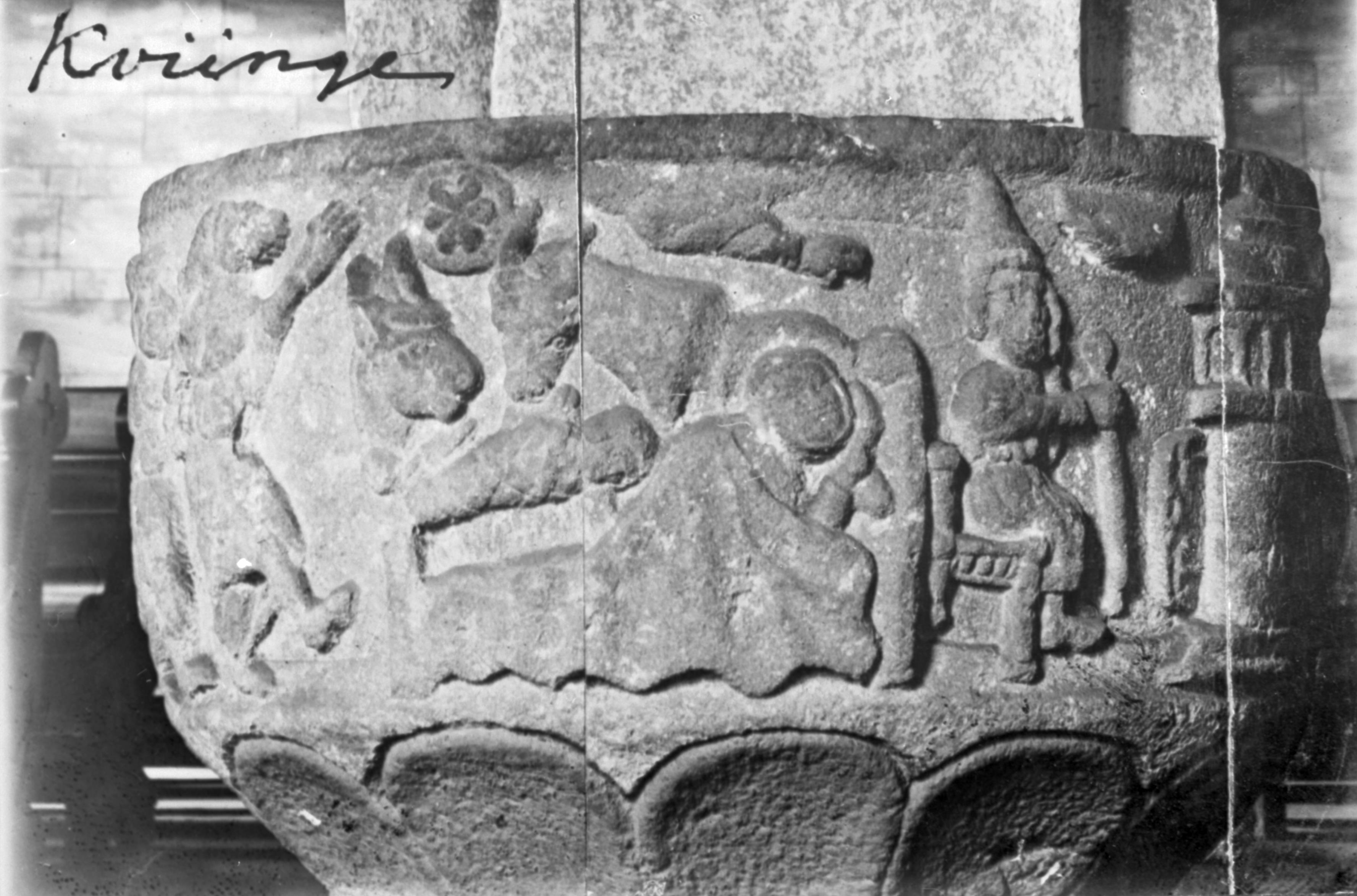 • Medeltida dopfunt, detalj av cuppan.